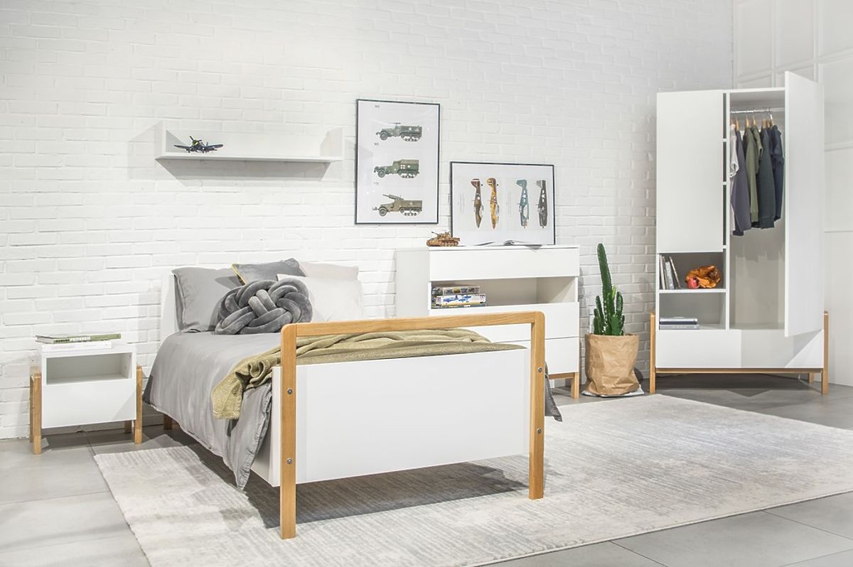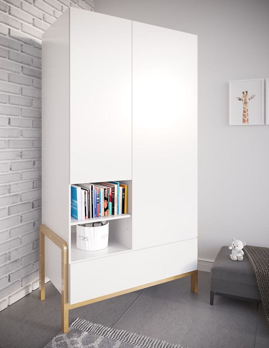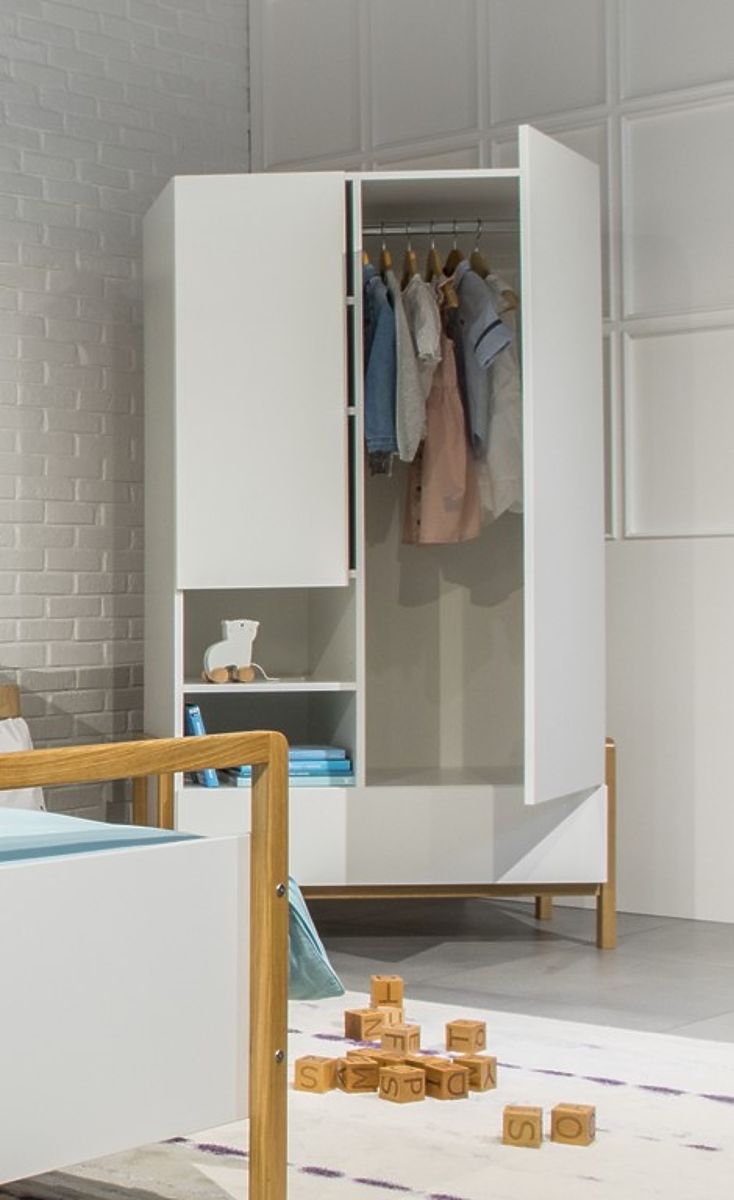 Il bellissimo armadio bianco a due ante Viktor in stile scandinavo aggiunge un tocco di eleganza sia alla stanza delle ragazze che a quella dei ragazzi. Questa soluzione originale di armadio offre molto spazio di archiviazione.