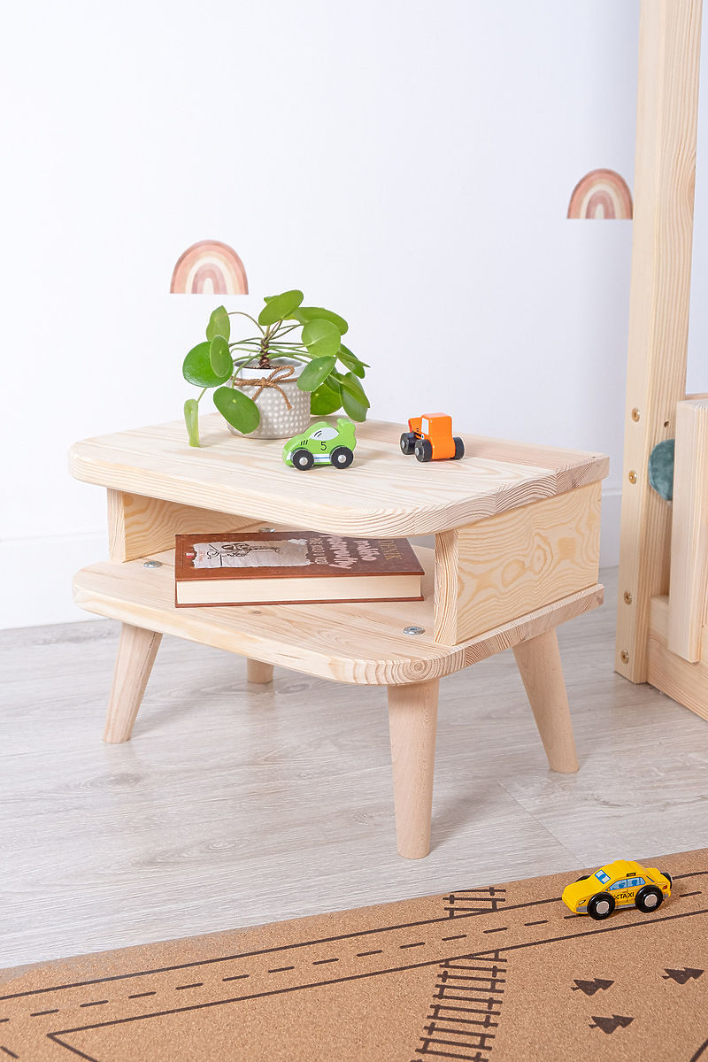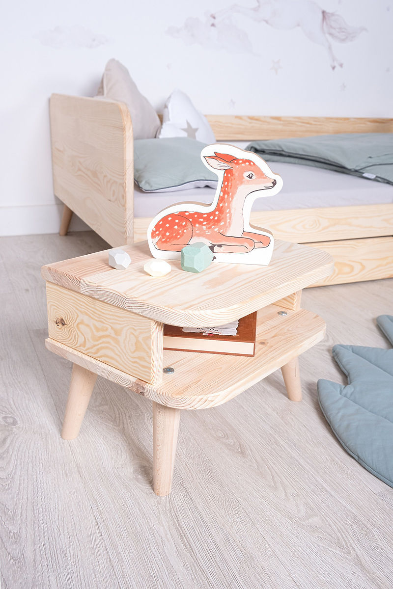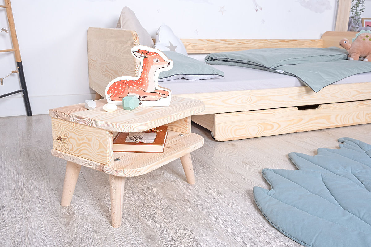 L'elegante comodino della collezione Ourbaby NELL, realizzato in legno di pino di alta qualità, sarà un complemento perfetto per la camera dei bambini. Questo comodino offre molto più di un semplice spazio per riporre gli oggetti. Con un pratico ripiano offre spazio sufficiente per libri, orologi, telefoni cellulari e altri oggetti personali.
