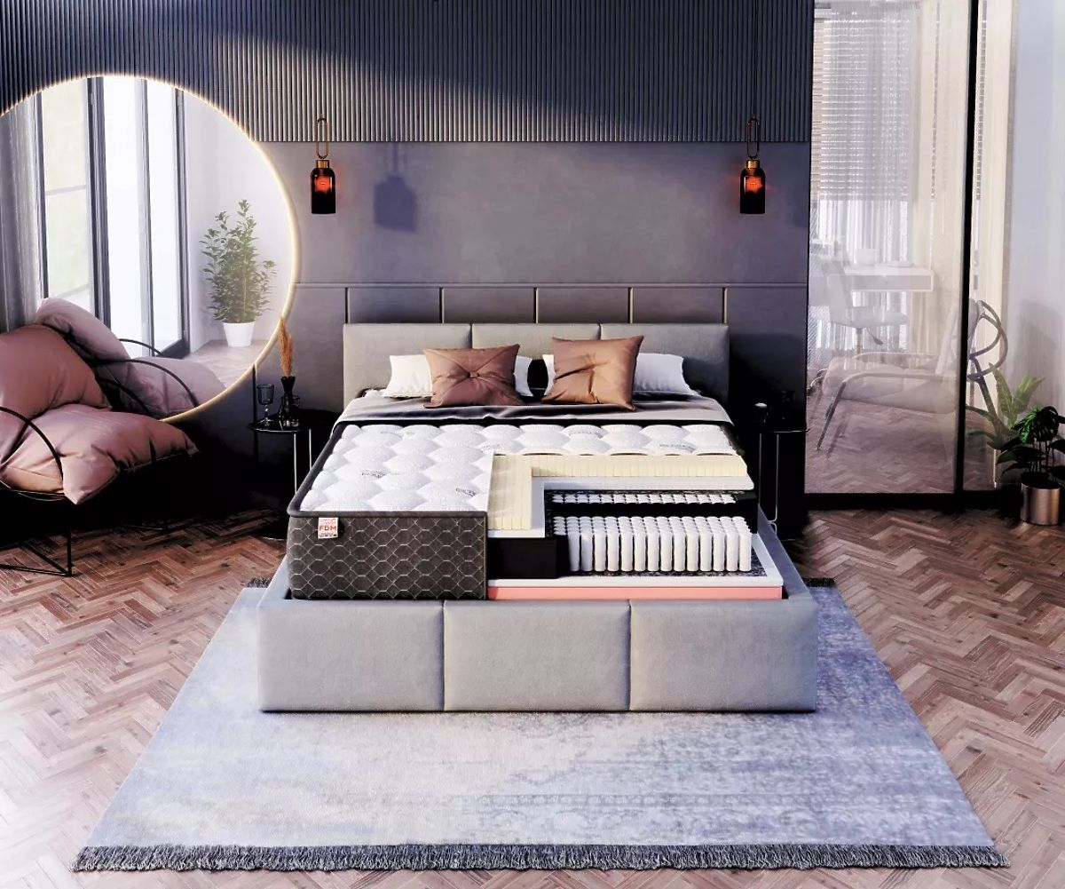 Su un lato del materasso è presente uno strato di lattice , molto flessibile , che migliora il comfort, e grazie alla struttura traforata, è ottimamente traspirante . Lo strato successivo è costituito da schiuma pur T25 , i cui vantaggi sono l'elevata resistenza alla deformazione, elasticità, traspirabilità e stabilizza il corpo durante il riposo. Tra le molle e la schiuma pur T25 è stato inserito un materiale separatore . Questo è un feltro naturale che può prolungare significativamente la vita del materasso e rafforzarne la struttura. Il comfort del sonno è incredibilmente aumentato dalla schiuma termoplastica VISCO , che si trova sull'altro lato del materasso. A causa dell'influenza della temperatura corporea e del peso , copia perfettamente le curve naturali del corpo , garantendo il corretto sostegno dell'intera figura. VISCO e le molle sono nuovamente separati da uno strato di resistente schiuma pur T25 e da un materiale di separazione naturale.