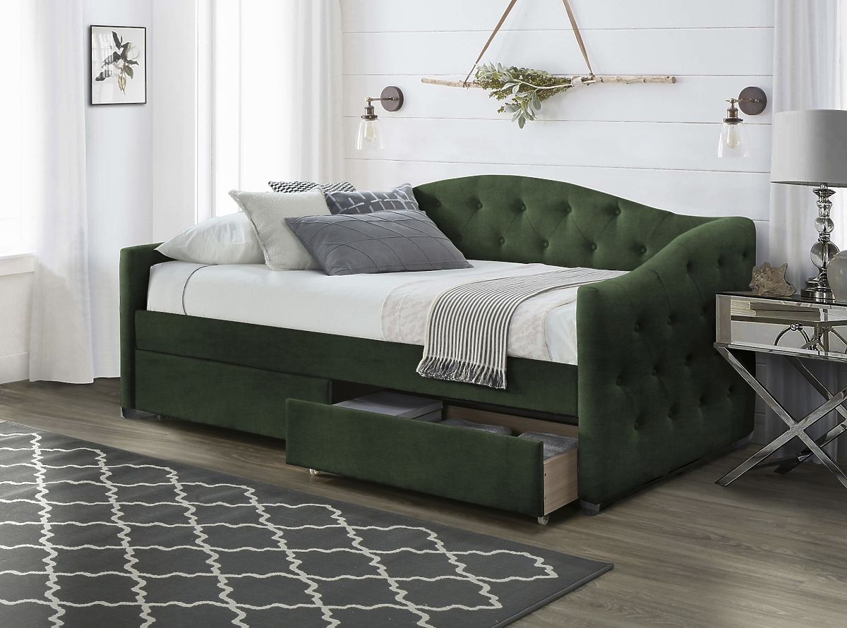 La testiera sagomata è un elemento estetico che lo contraddistingue e gli conferisce un interessante elemento di design. Il letto diventerà un eccellente elemento centrale della vostra camera da letto e attirerà sicuramente l'attenzione. La trapuntatura sulla testata del letto e sui lati conferisce ai mobili un aspetto lussuoso e attraente. Il colore verde scuro dona un senso di calma ed eleganza alla camera da letto. Questo colore crea un'atmosfera piacevole per il sonno e il relax.