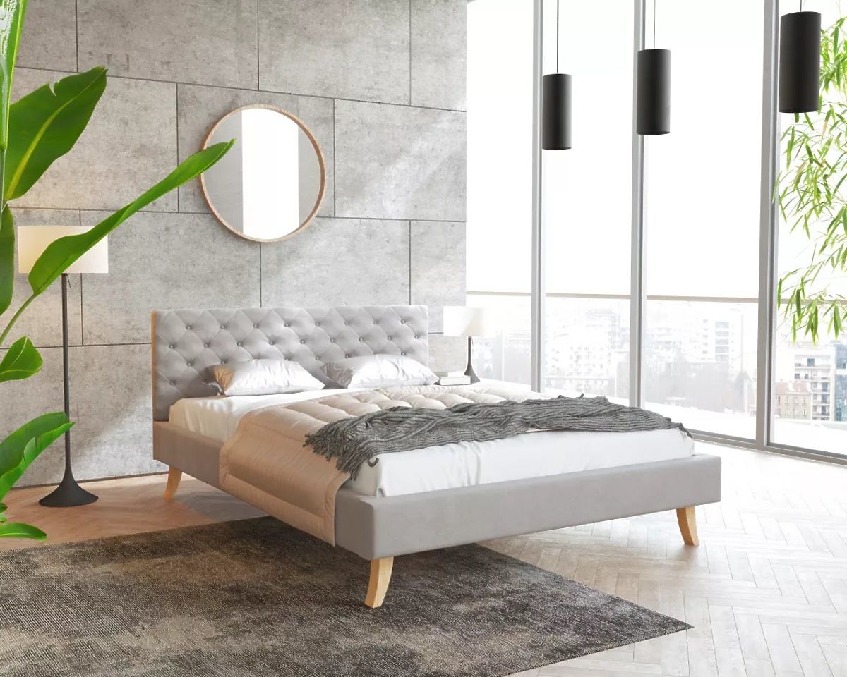 Il materiale di rivestimento del letto imbottito è il tessuto velour grigio Trinity . È caratterizzato da una struttura fine e allo stesso tempo da un'elevata resistenza alla luce solare. È morbido, soffice e piacevole al tatto . È inoltre molto resistente all'abrasione e al pilling. Ti impressionerà con il suo aspetto moderno e le cuciture decorative sulla testata del letto.