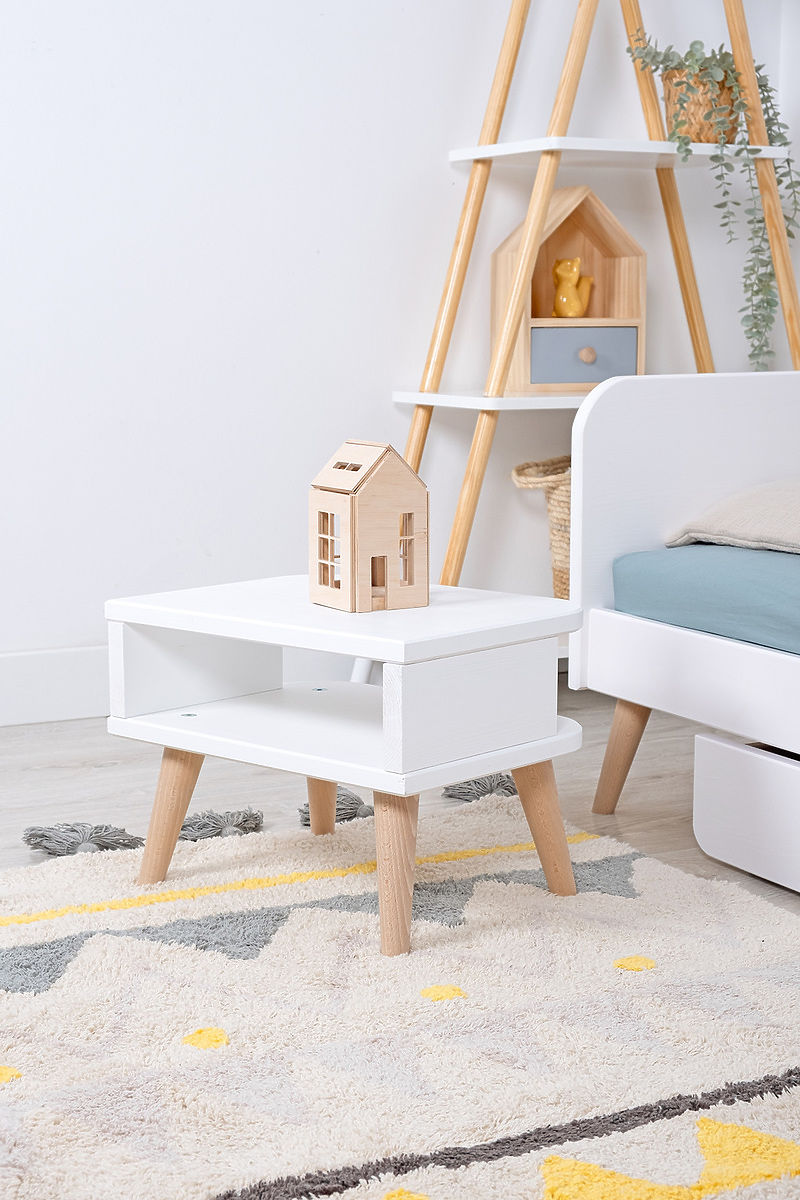 Questo elegante comodino della collezione NELL , marca Ourbaby , realizzato in legno di pino di qualità, offre un posto per le tue cose e sarà anche un'aggiunta elegante a qualsiasi interno. La combinazione di bianco e colori naturali conferisce alla stanza un'eleganza discreta. Il prodotto è trattato con 3 strati di vernice bianca, che garantisce resistenza all'abrasione.