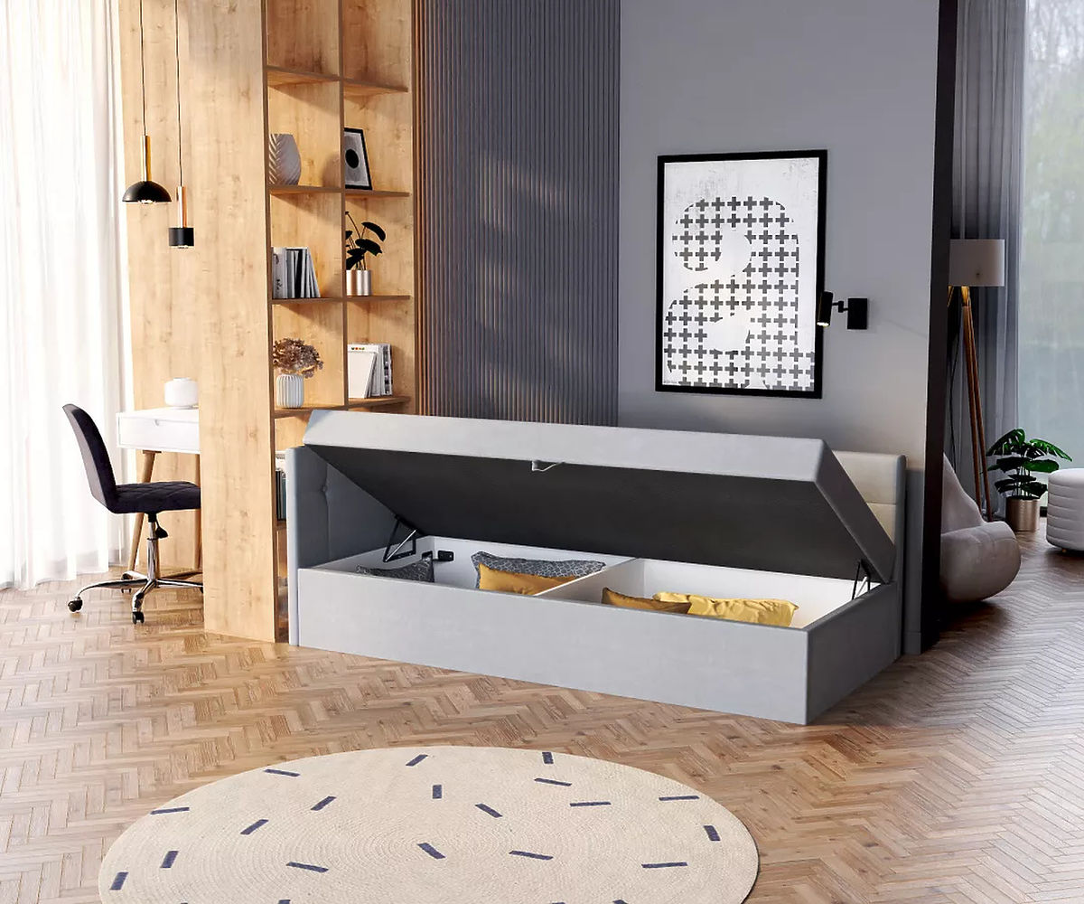 Il moderno letto imbottito BILLY con dimensioni di 200 x 90 cm è una scelta eccellente per chi cerca mobili eleganti per le proprie camere da letto. Oltre al materasso in schiuma di alta qualità con una pratica maniglia per un facile sollevamento, il letto offre anche uno spazio di stoccaggio sotto il letto. Questa funzionalità consente di riporre vari accessori per la camera da letto e aiuta a mantenere un aspetto ordinato della stanza.