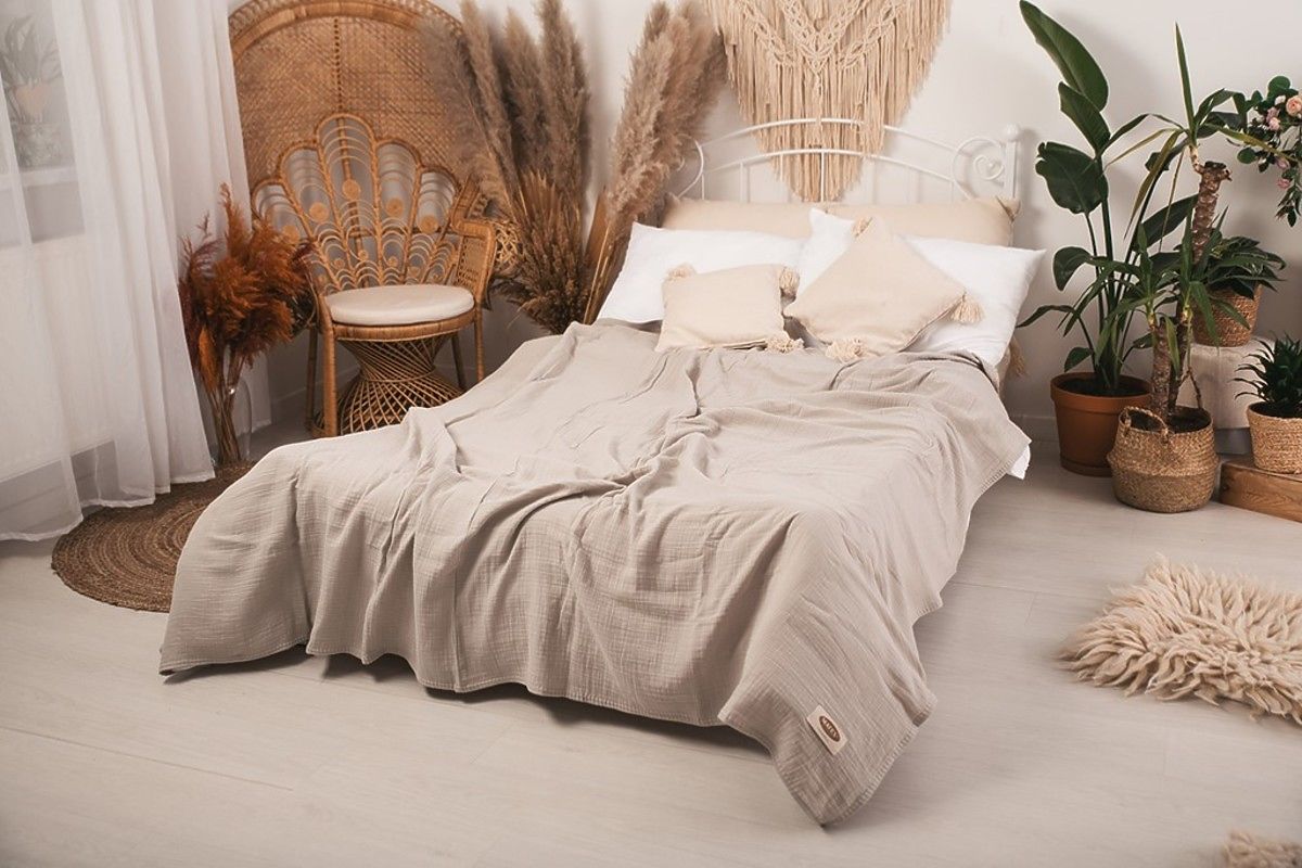 Lukahome.it » Biancheria da letto / Copriletti e coperte / Copriletto in mussola 210x240 beige chiaro