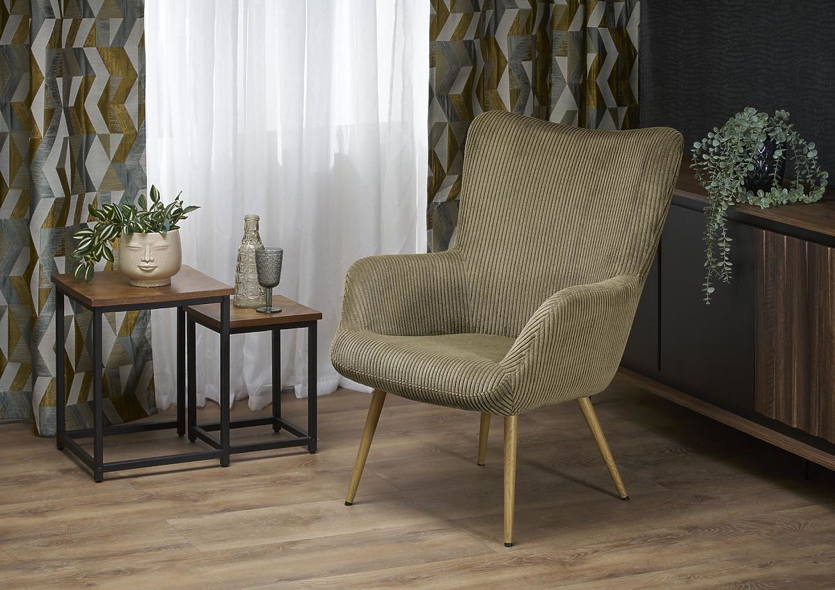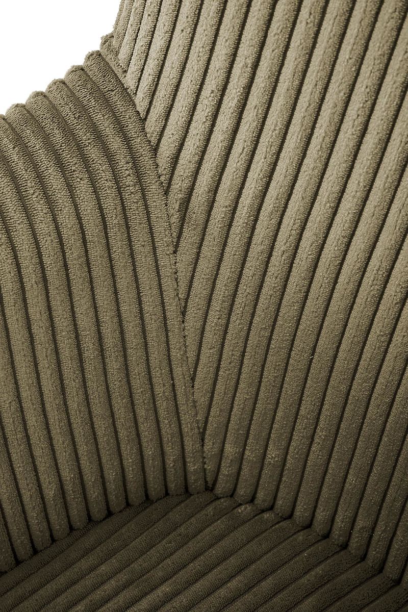 Il velluto a coste color oliva conferisce alla poltrona un aspetto morbido e sofisticato. Questo tessuto non è solo piacevole al tatto, ma anche durevole e di facile manutenzione, garantendo una lunga durata alla tua sedia.