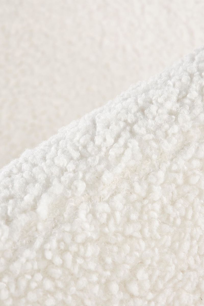 La struttura è rivestita da un tessuto strutturato ad imitazione della pelle di agnello, che crea una superficie piacevole e calda al tatto.
