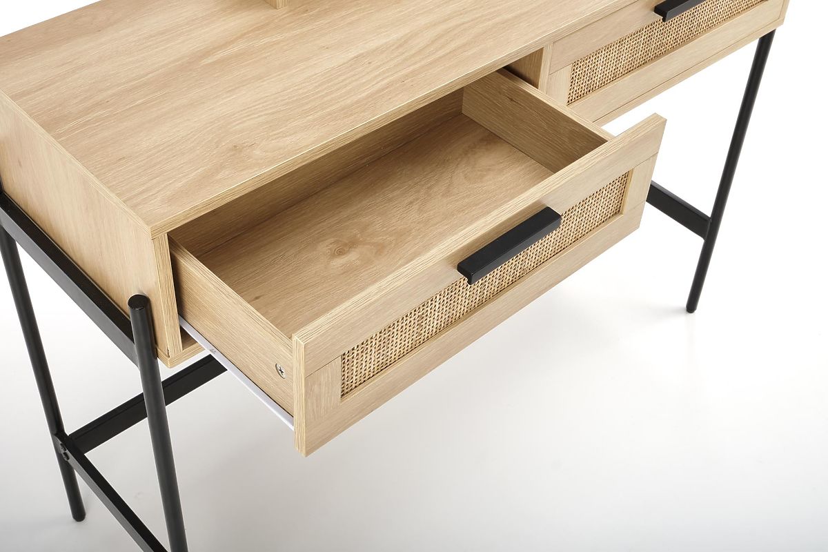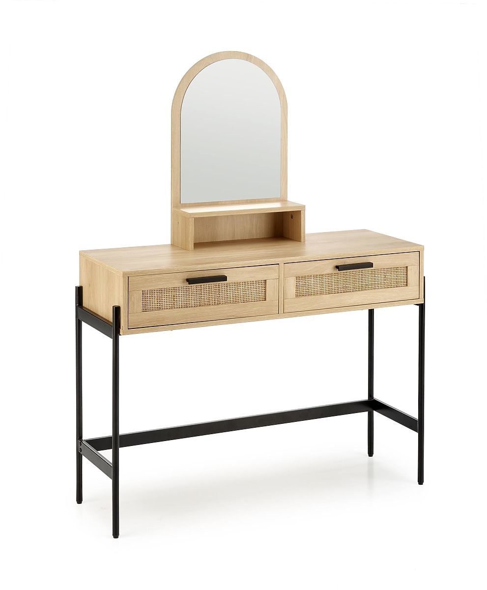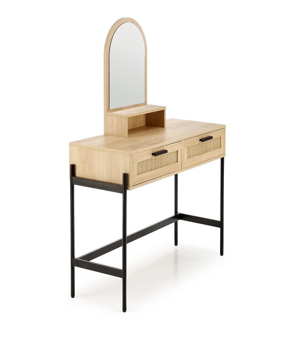 Il tavolo è dotato di due cassetti chiudibili e di un pratico specchio, che permette di effettuare comodamente le vostre cure cosmetiche e il trucco. Questo tavolo in rattan creerà lo spazio perfetto per la tua cura di bellezza personale.