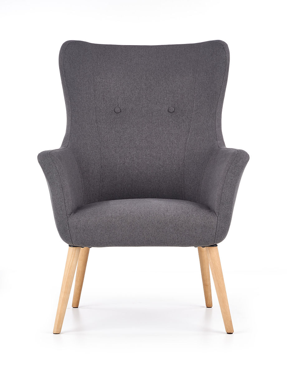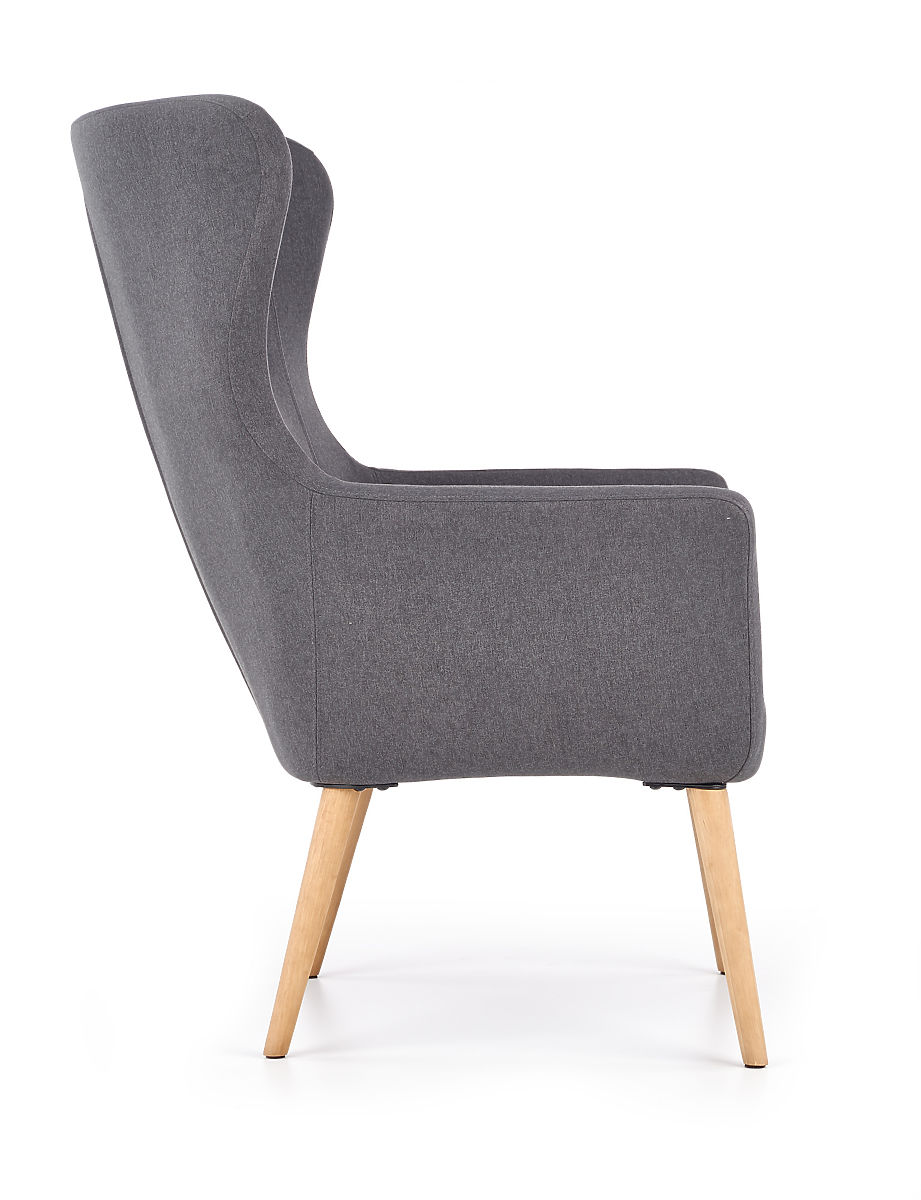 Goditi il comfort e l'eleganza con questa poltrona in rovere massiccio con rivestimento grigio. Questa combinazione offre la perfetta combinazione di legno massiccio e moderno design scandinavo.