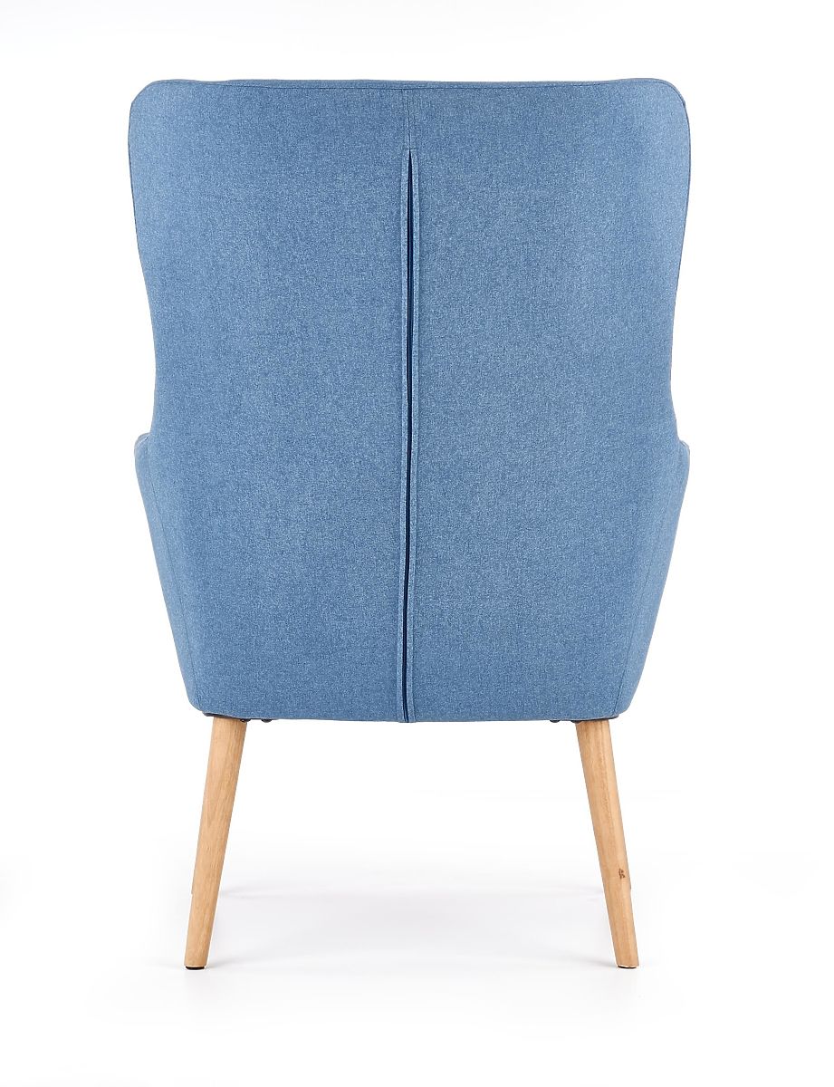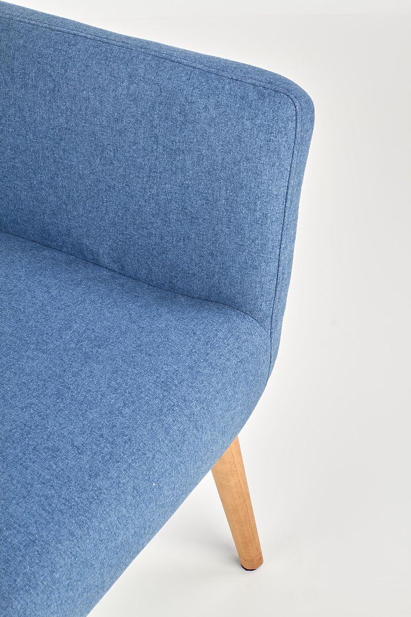 Goditi il comfort e l'eleganza con questa poltrona in rovere massiccio con rivestimento blu. Questa combinazione offre la perfetta combinazione di legno massiccio e moderno design scandinavo.
