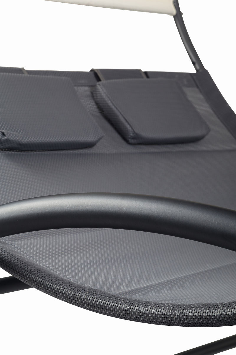 Chiunque apprezzerà un po' di lusso e comfort associato al relax all'aria aperta. Il lettino a due posti con baldacchino è una forma moderna del tradizionale lettino. Combina un aspetto moderno e grande comfort grazie alla superficie profilata sufficientemente ampia.