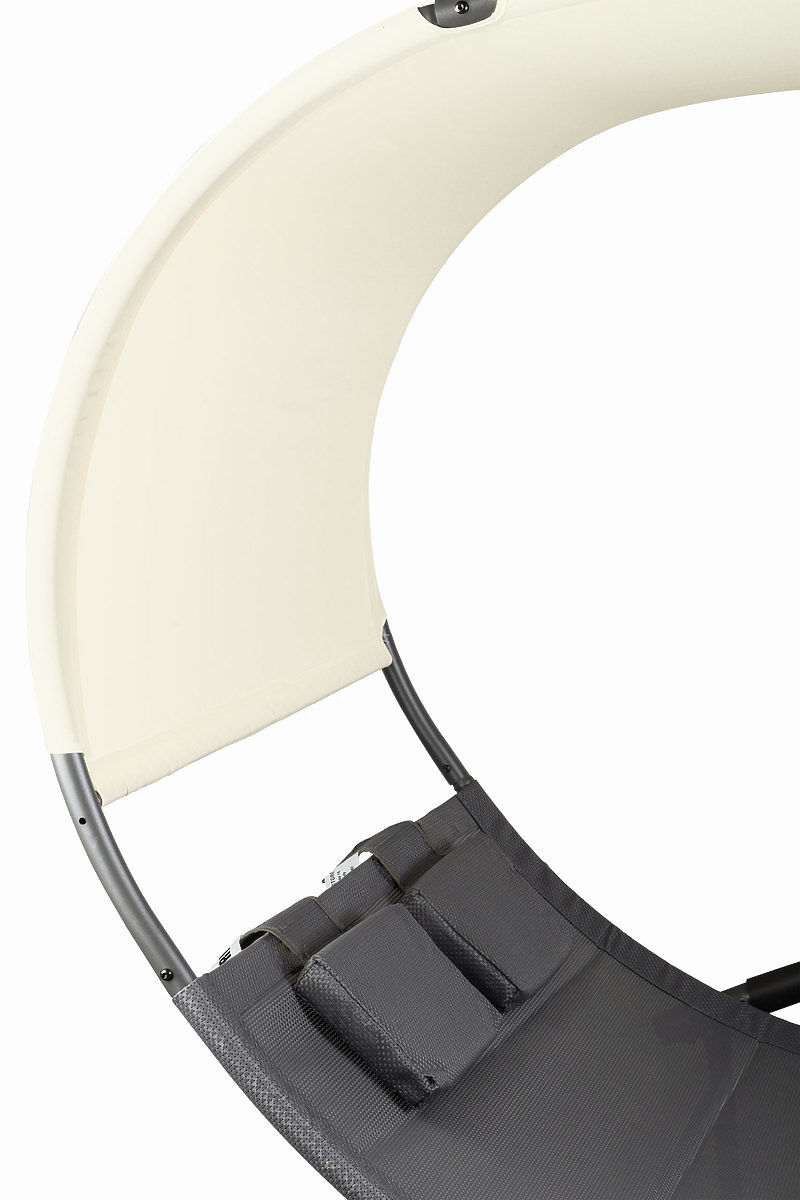 PROGETTATO PER TEIl lettino deve la sua stabilità e sicurezza al telaio correttamente profilato e agli sci, che permettono una leggera oscillazione. Il grande baldacchino offre un'ombra piacevole durante le giornate calde e ci protegge dai raggi UV, e la leggera oscillazione rende il tempo trascorso all'aperto con i nostri cari ancora più piacevole. Il materiale di alta qualità con cui è realizzata la superficie del lettino "respira" e permette il passaggio dell'acqua, rendendolo resistente alle condizioni atmosferiche.