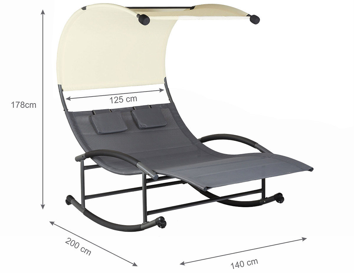Questo lettino sarà un'ottima aggiunta a qualsiasi giardino, terrazza o attrazione presso la piscina di casa. La leggera oscillazione mentre si è sdraiati in due farà sì che ci passeremo lunghe ore.