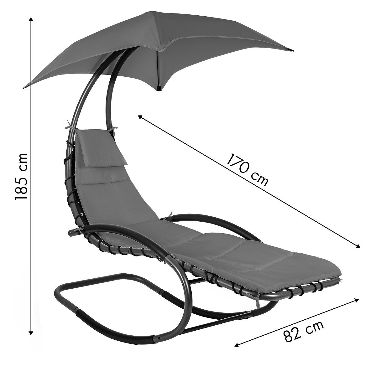 Il grande tettuccio regolabile garantisce un'ombra piacevole durante le giornate calde e il leggero dondolio rende più piacevole il tempo trascorso all'aperto.