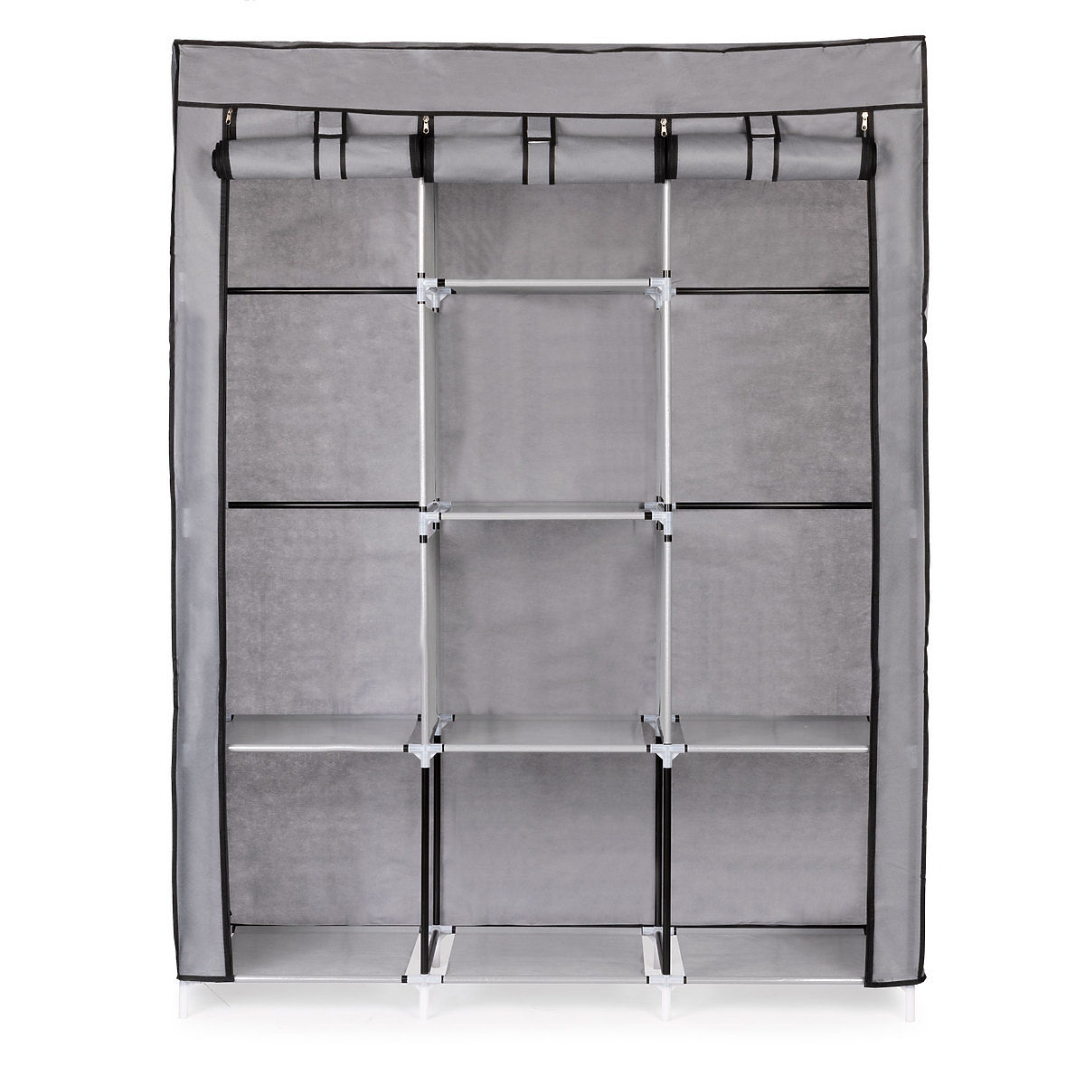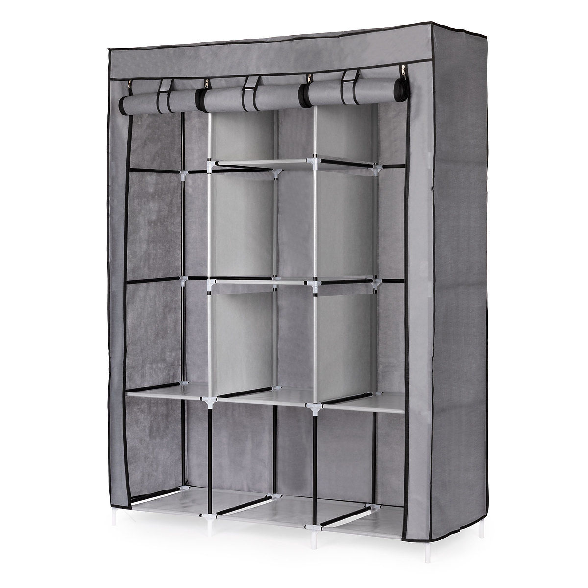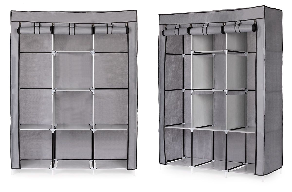 Armadio in tessuto con scaffali e aste per appendere vestiti e scarpe. .. altro