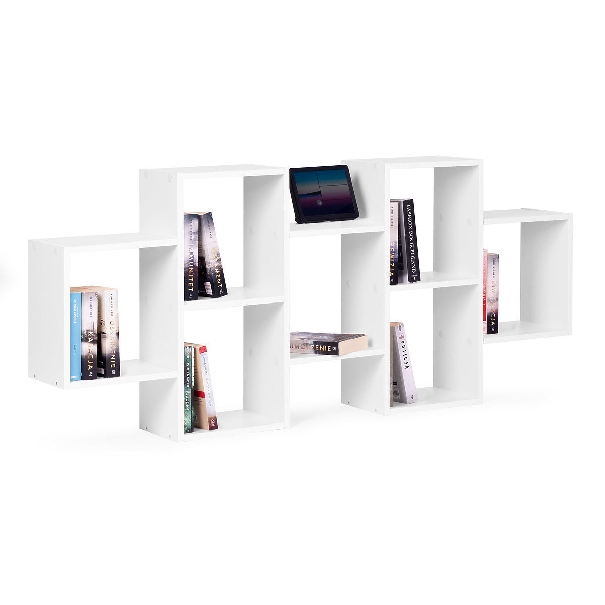 Mensola sospesa moderna con 8 ripiani in colore bianco. .. altro