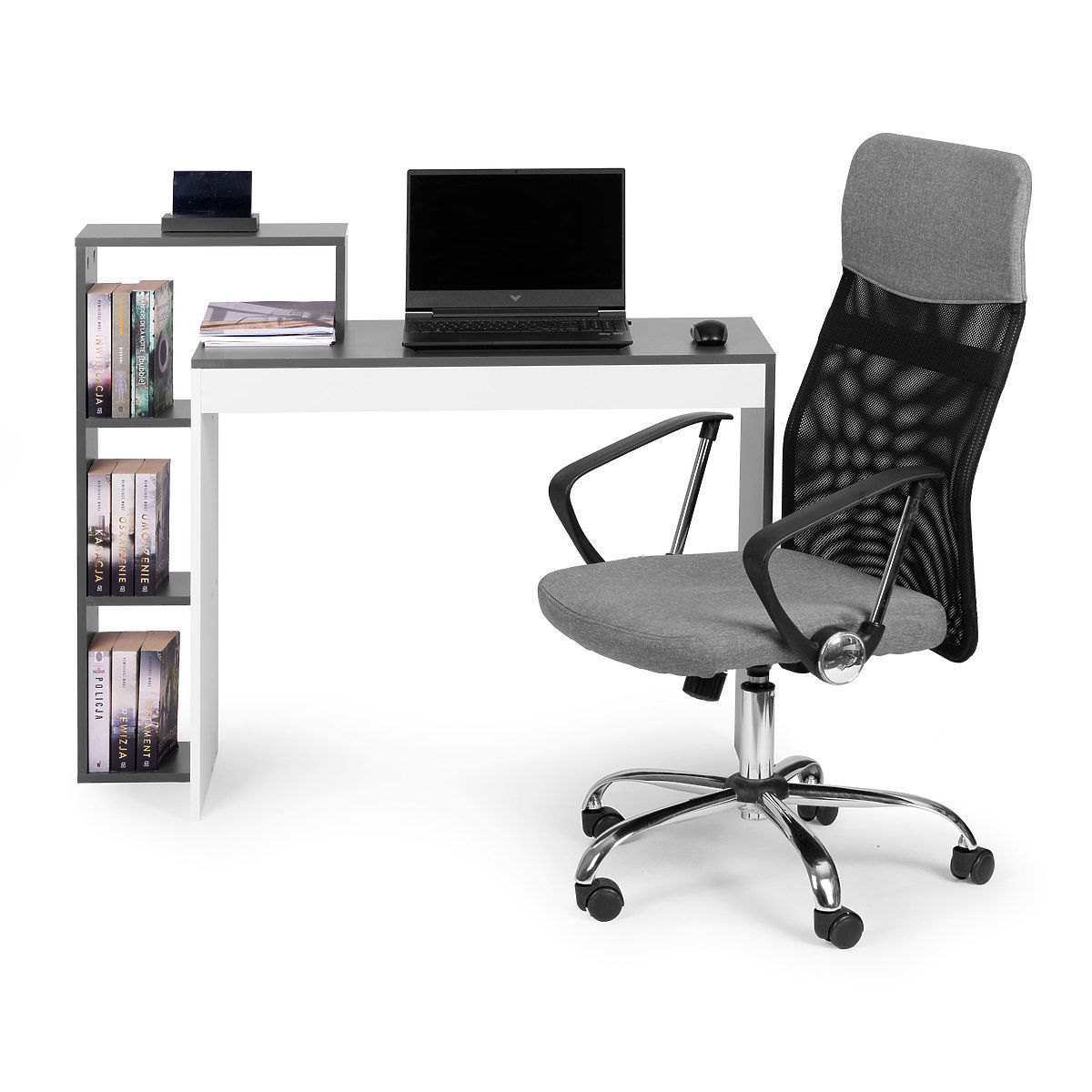 Lukahome.it » Tavoli e tavolini da caffè / Scrivanie / Scrivania per computer bianco-grigia con scaffale a 4 ripiani