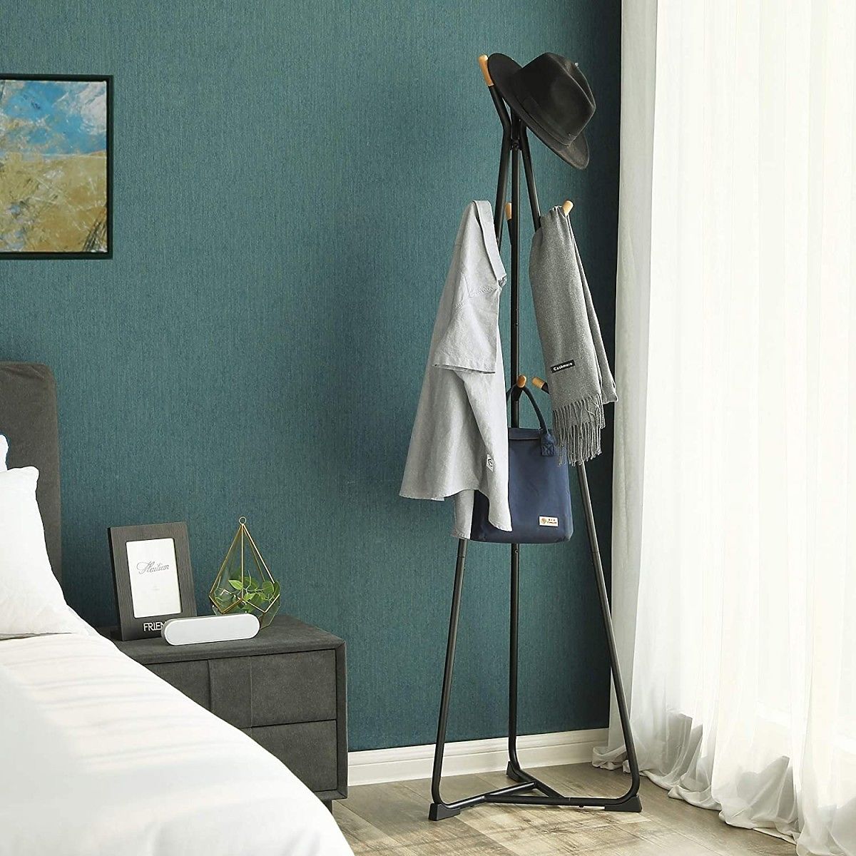 La base triangolare garantisce la stabilità dell'appendiabiti da pavimento.