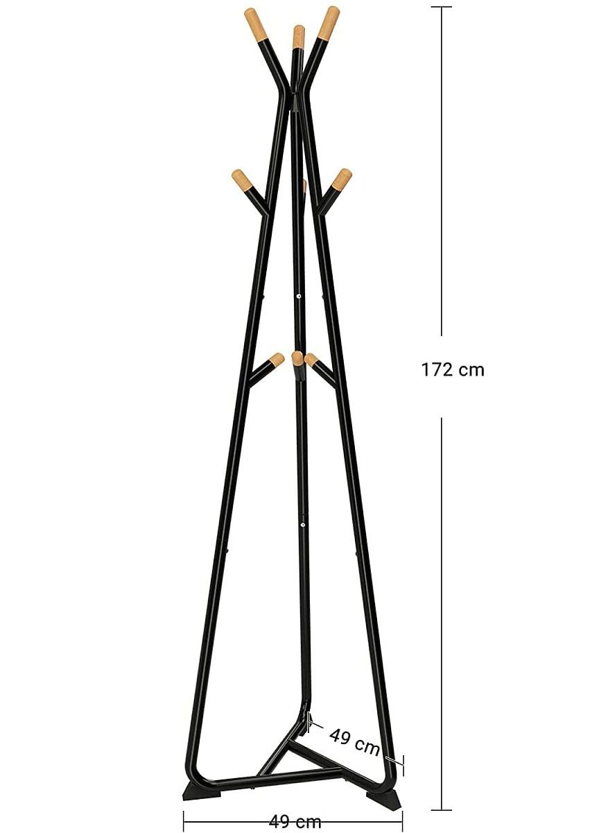 Questo prodotto salvaspazio ha una base triangolare stabile, che ci assicura che il prodotto non si inclinerà con un carico aggiuntivo. Inoltre, il prodotto è dotato di 9 ganci arrotondati in faggio per appendere cappotti, giacche, borse o sciarpe e cappelli.