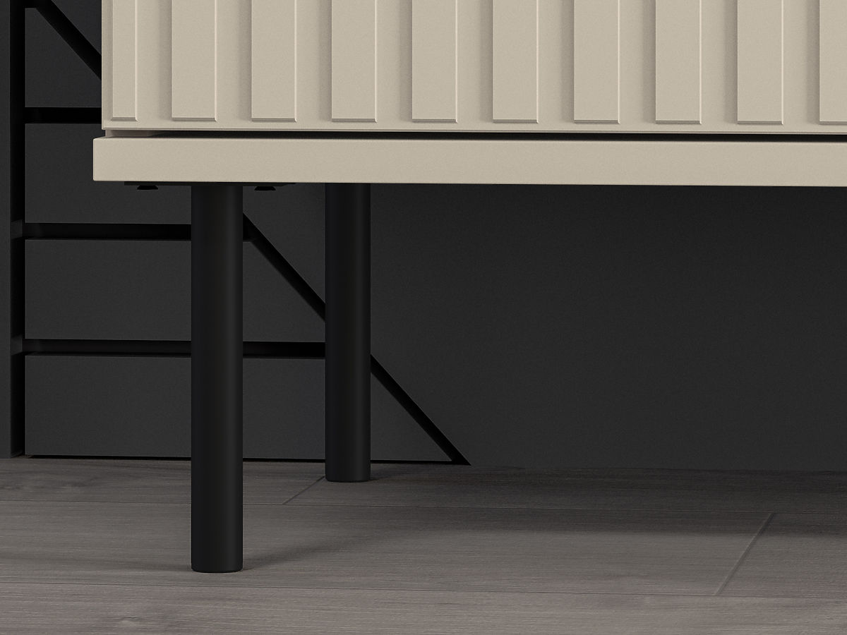 Il tavolo TV Sophie dal design beige unisce eleganza, praticità e design moderno. Grazie all'ampio spazio di archiviazione offre spazio sufficiente per diversi dispositivi elettronici, libri o altro. Un elemento interessante dell'arredamento è la moderna porta fresata, completata da eleganti maniglie dorate e gambe in metallo nero. Il tavolo TV è un'ottima aggiunta al soggiorno.