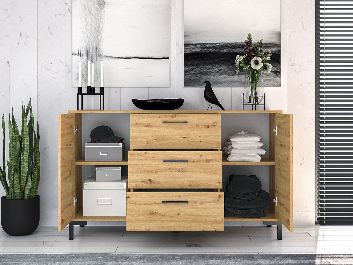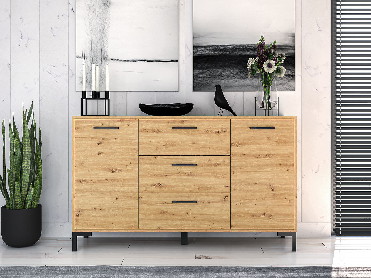 L'elegante cassettiera della collezione Nevio è un mobile pratico ed elegante che si adatta perfettamente ad interni moderni e tradizionali. Il decoro in rovere conferisce alla cassettiera un piacevole aspetto naturale. Questa aggiunta di buon gusto alla tua casa ti fornirà molto spazio per riporre le tue cose, che si tratti di vestiti, libri o altri oggetti che vuoi tenere a portata di mano, aiutandoti allo stesso tempo a mantenere la tua stanza in ordine.