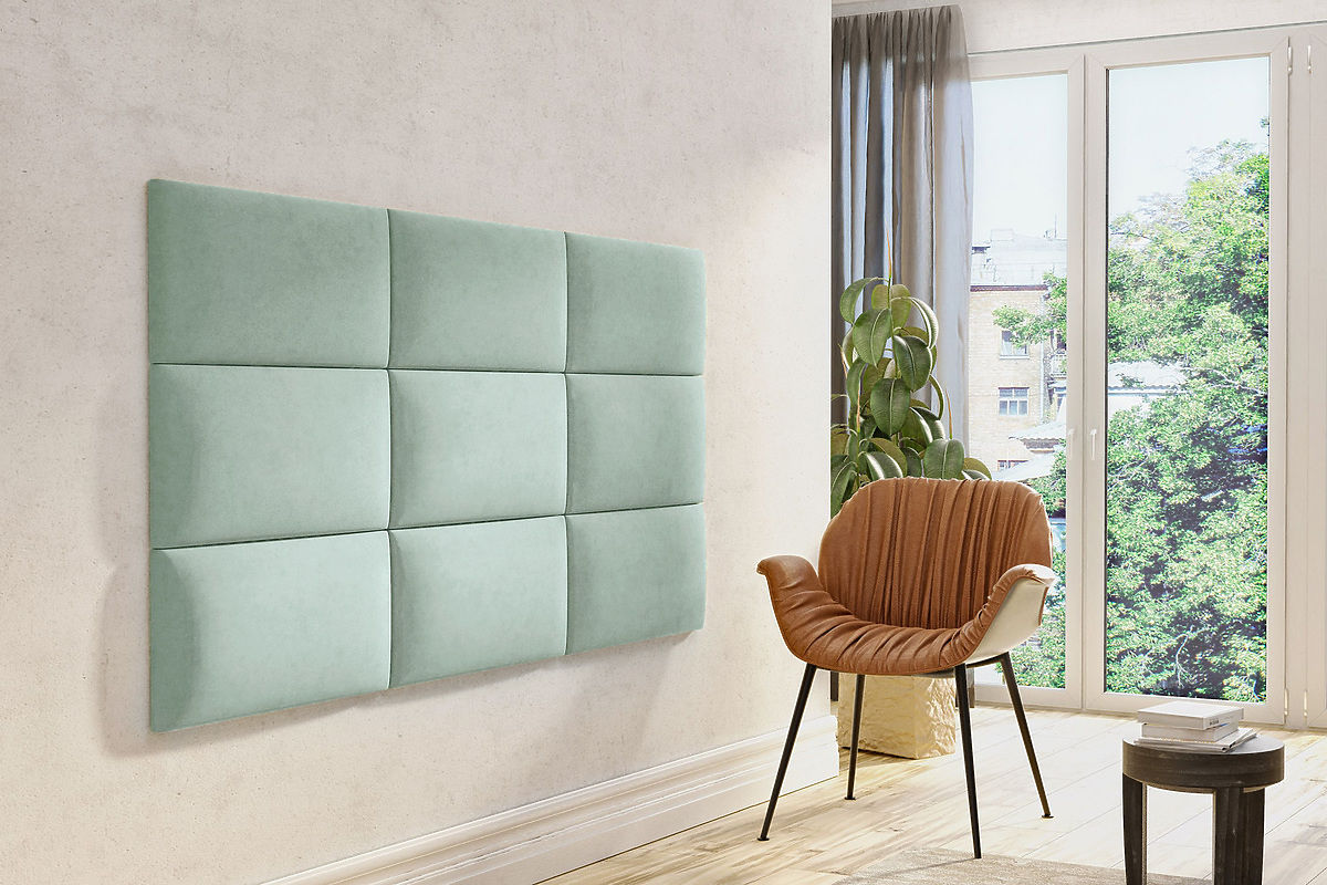 I pannelli imbottiti Klasic di colore menta sono disponibili in tre diverse dimensioni: