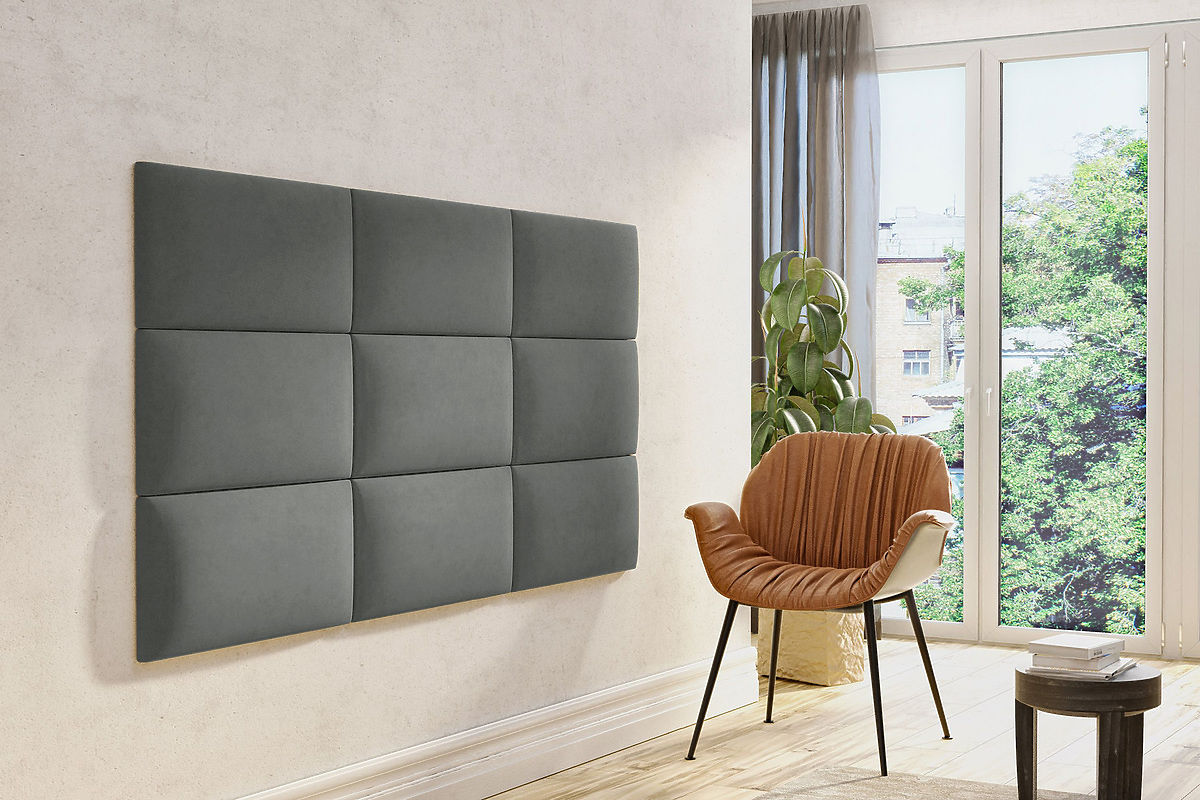 I pannelli imbottiti Klasik di colore grafite sono disponibili in tre diverse dimensioni: