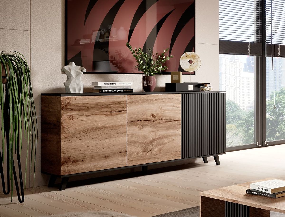 Aggiungi un tocco di eleganza moderna alla tua casa con la cassettiera Rovere Wotan - Nero. Questa cassettiera è progettata per offrire ampio spazio di archiviazione e diventare un complemento d'arredo elegante per il tuo interno.