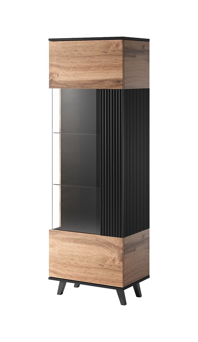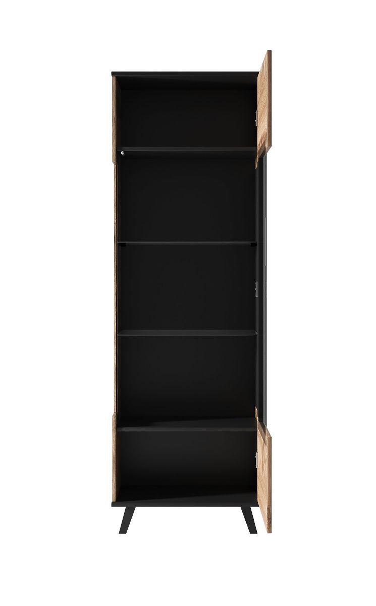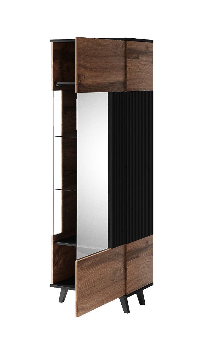 Vetrina elegante in rovere Wotan e nero per decorazioni e libri. .. altro