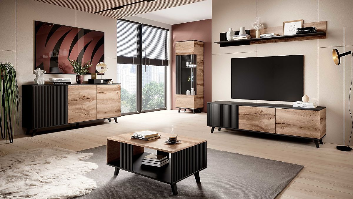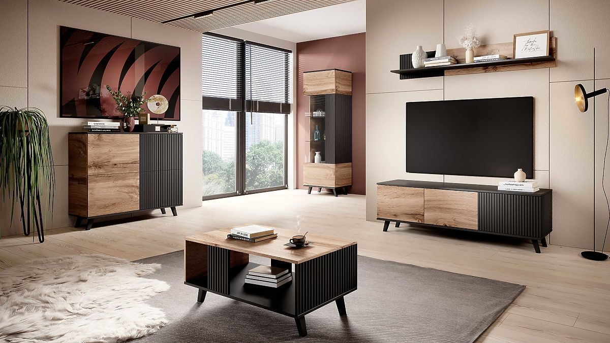 Colore: La combinazione di rovere wotan e nero conferisce alla vetrina un aspetto moderno e sofisticato, che si adatta facilmente a qualsiasi stile di arredamento.