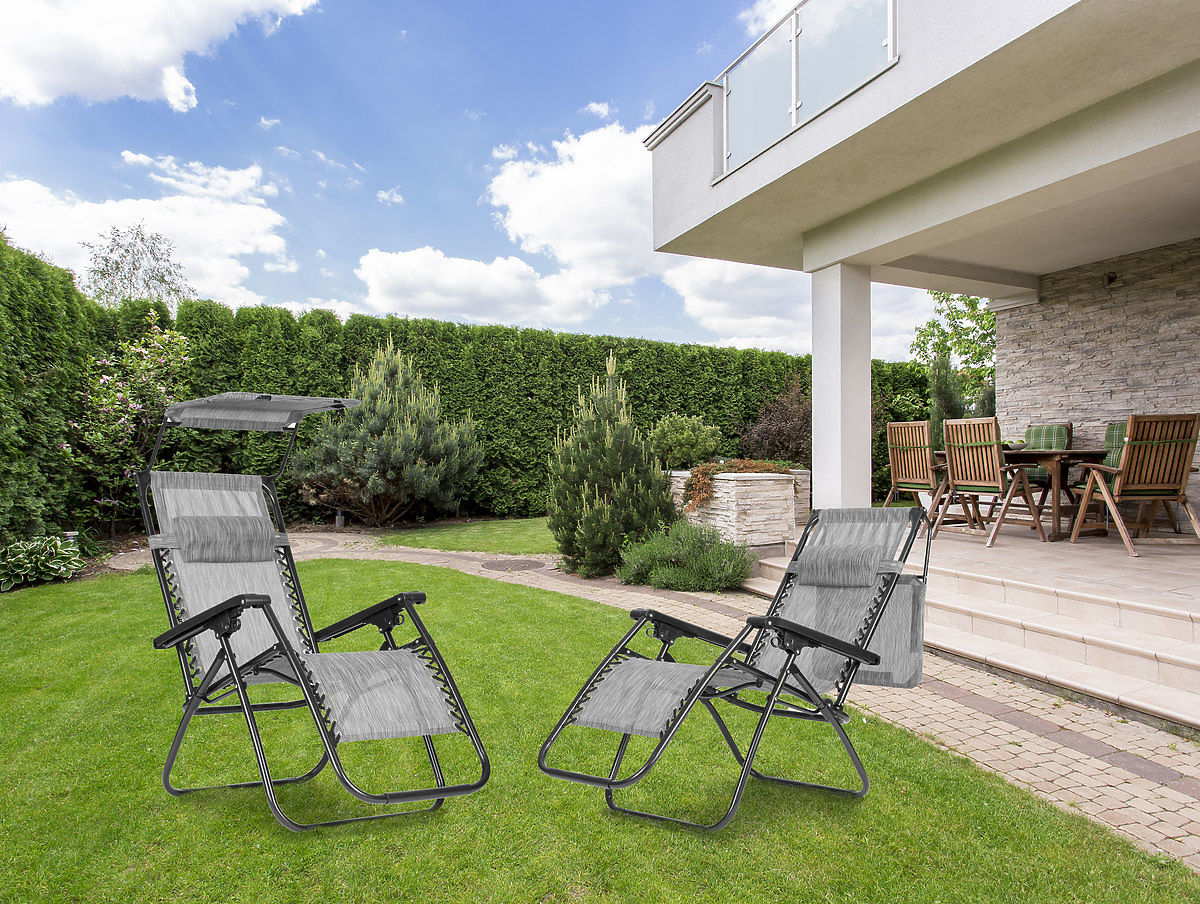 Lukahome.it » Mobili da giardino / lettini da giardino / Lettino da giardino con schienale regolabile e tettoia mobile Modernhome - grigio