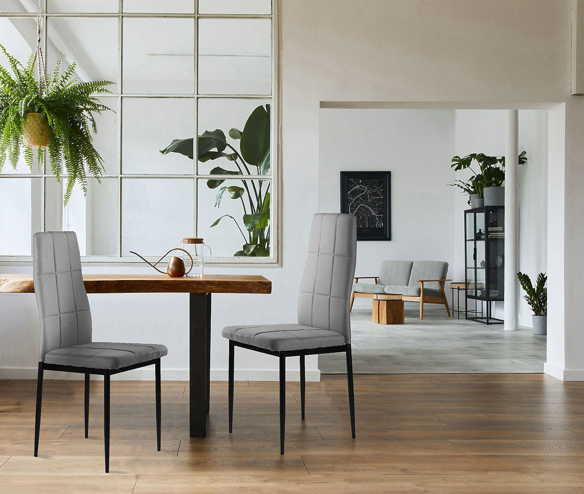 Le sedie si abbineranno perfettamente al tavolo di famiglia nella tua sala da pranzo e cucina. I mobili grigi trapuntati realizzati in tessuto piacevole al tatto si adattano a qualsiasi interno e gli conferiscono il giusto fascino.