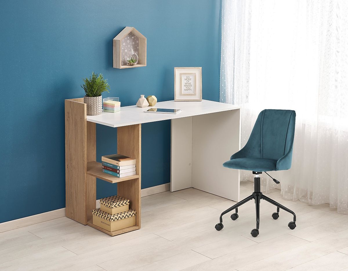 Scrivania moderna in rovere dorato e bianco, perfetta per l'ufficio domestico o lo studio. .. altro