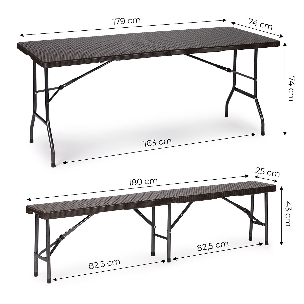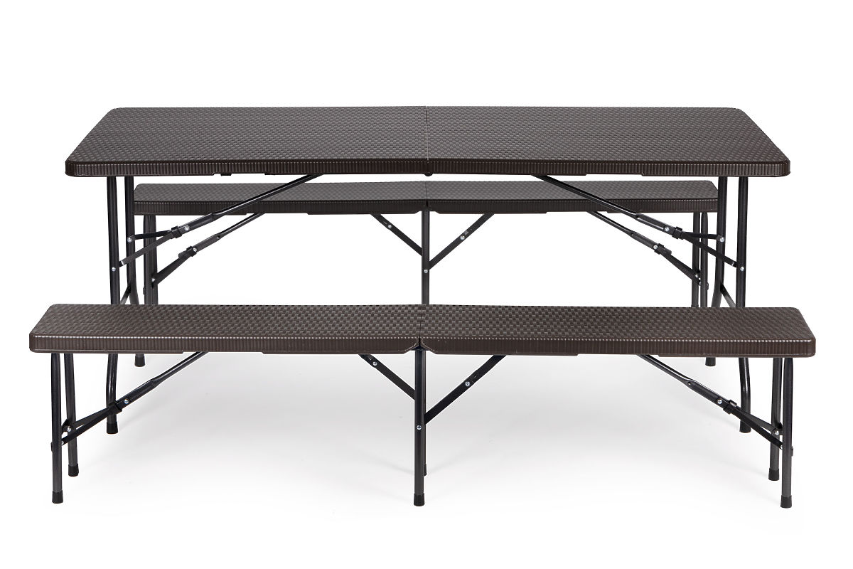 COSTRUZIONE PENSATAGli elementi del telaio hanno un blocco speciale che impedisce la piegatura accidentale della struttura. Grazie a ciò, non dovrai preoccuparti della sicurezza dei tuoi ospiti, il tavolo e le panche rimarranno sempre stabili.