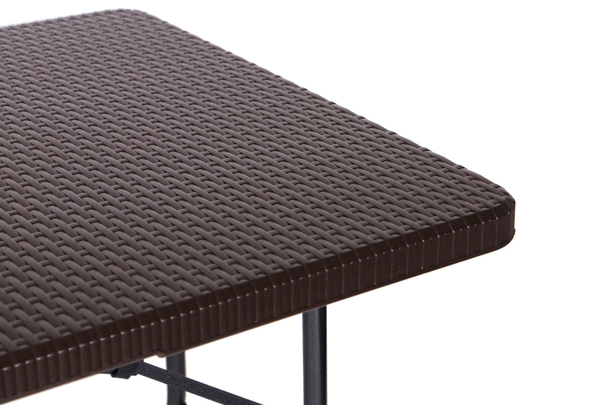 TAVOLOIl piano è realizzato in materiale HDPE resistente agli agenti atmosferici e ai danni meccanici, il che rende l'arredo utilizzabile per molte stagioni. Il telaio in metallo garantisce la stabilità necessaria e consente al tavolo di sostenere un carico fino a 100 kg.