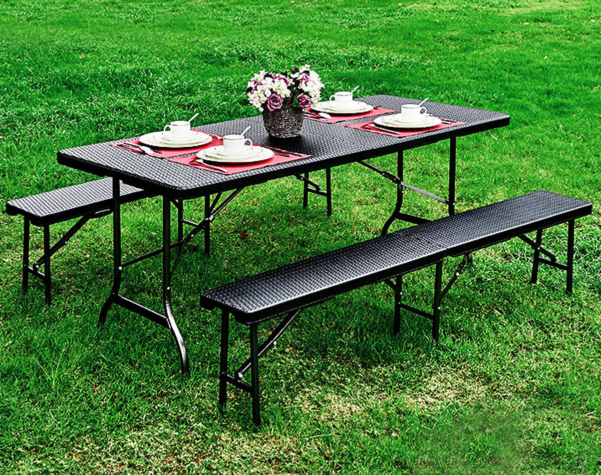 Il set offre spazio per 8 persone, le altezze delle panche e del tavolo sono progettate per garantire comfort e una posizione comoda durante gli incontri all'aperto. La possibilità di piegare l'arredo in una valigia ti farà risparmiare spazio durante lo stoccaggio e faciliterà il trasporto.