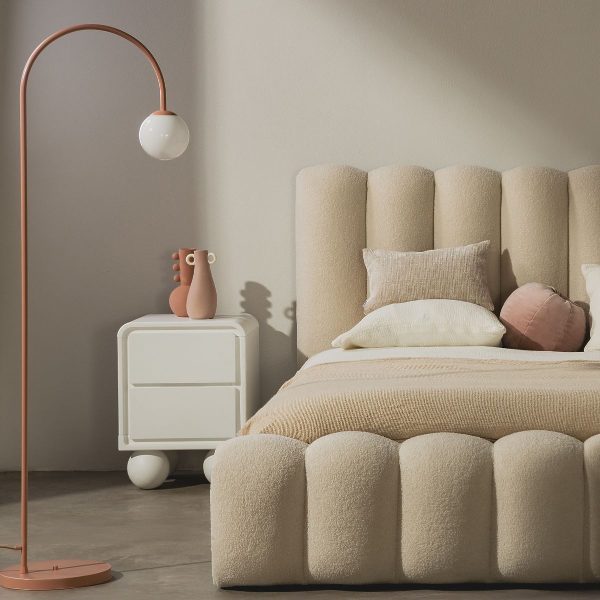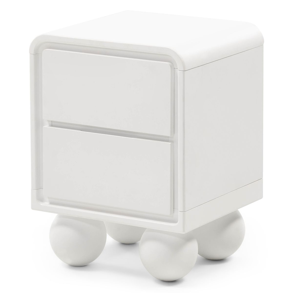 Lukahome.it » Tavoli e tavolini da caffè / Comodini / Comodino Lauria bianco, arrotondato, gambe a sfera