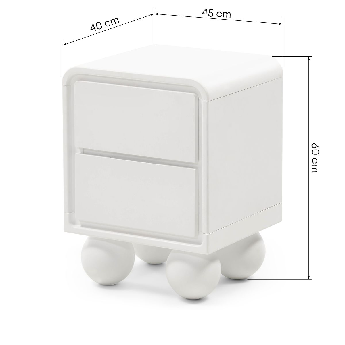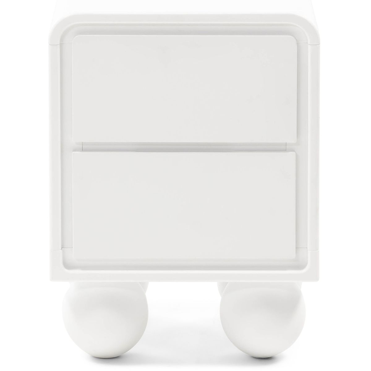 Comodino Lauria bianco con due cassetti spaziosi e gambe a sfera. .. altro
