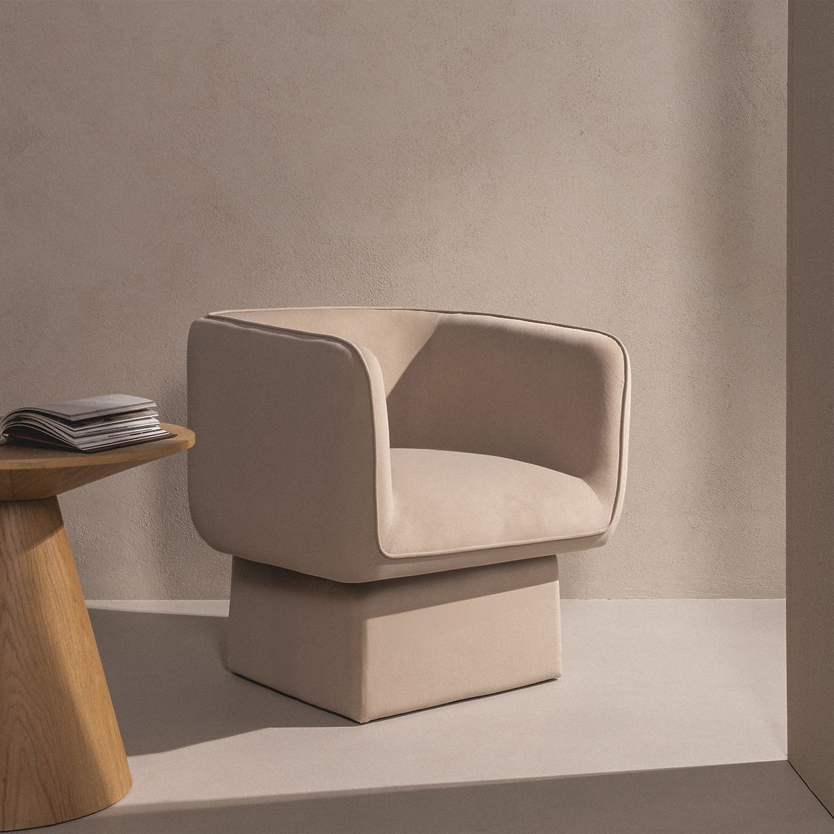Sedia girevole One in velluto beige chiaro per un comfort eccezionale. .. altro