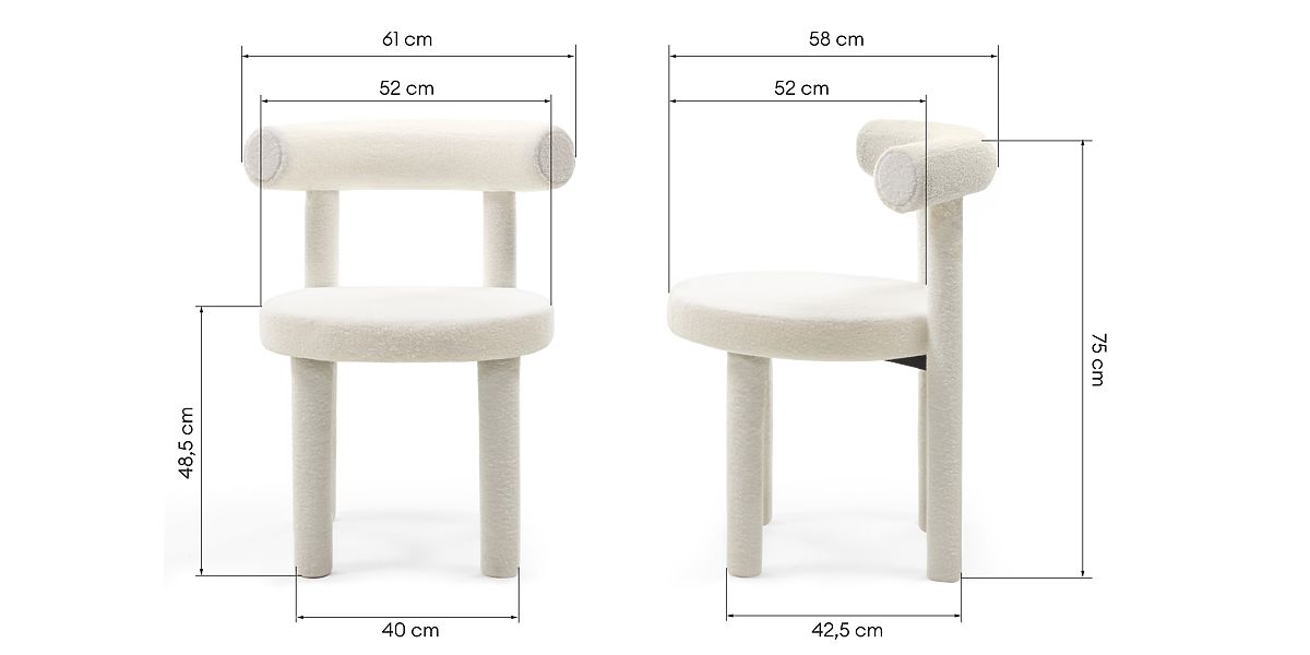 Sedia moderna con schienale arrotondato e tessuto bouclé ecru. .. altro