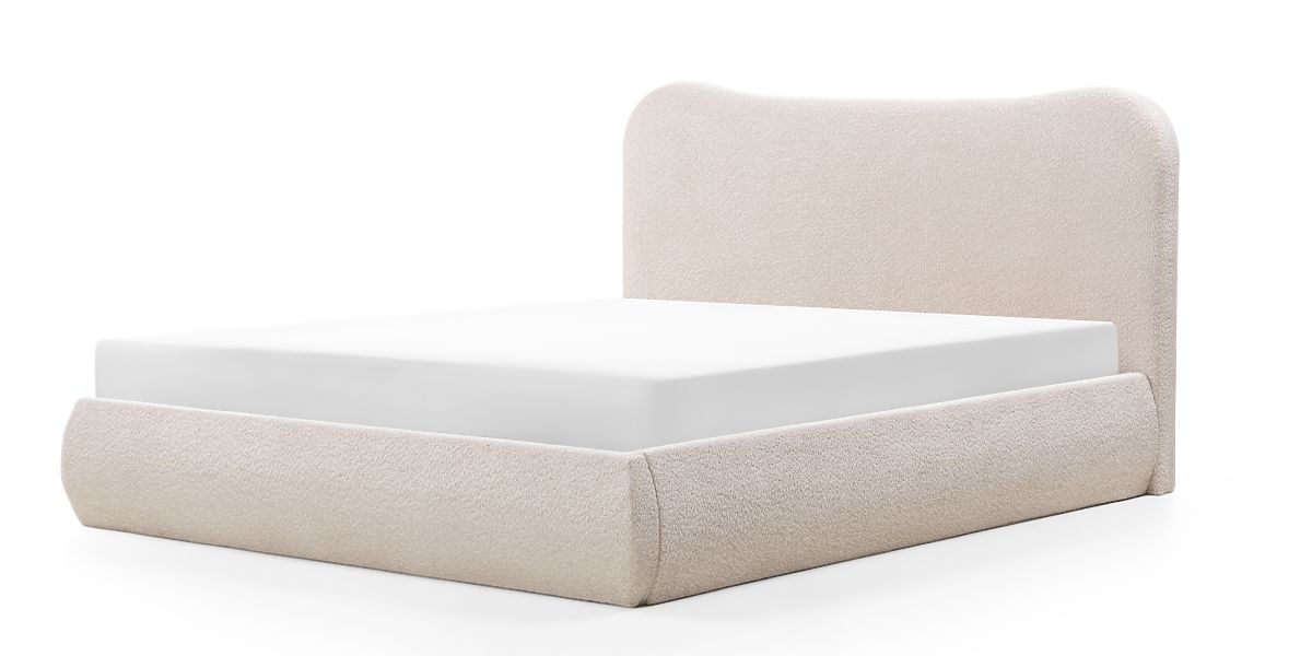 Lukahome.it » Letti / letti matrimoniali / Letti 160x200 / Letto imbottito Derry 160x200 cm, con rete e spazio di stoccaggio, arrotondato, beige