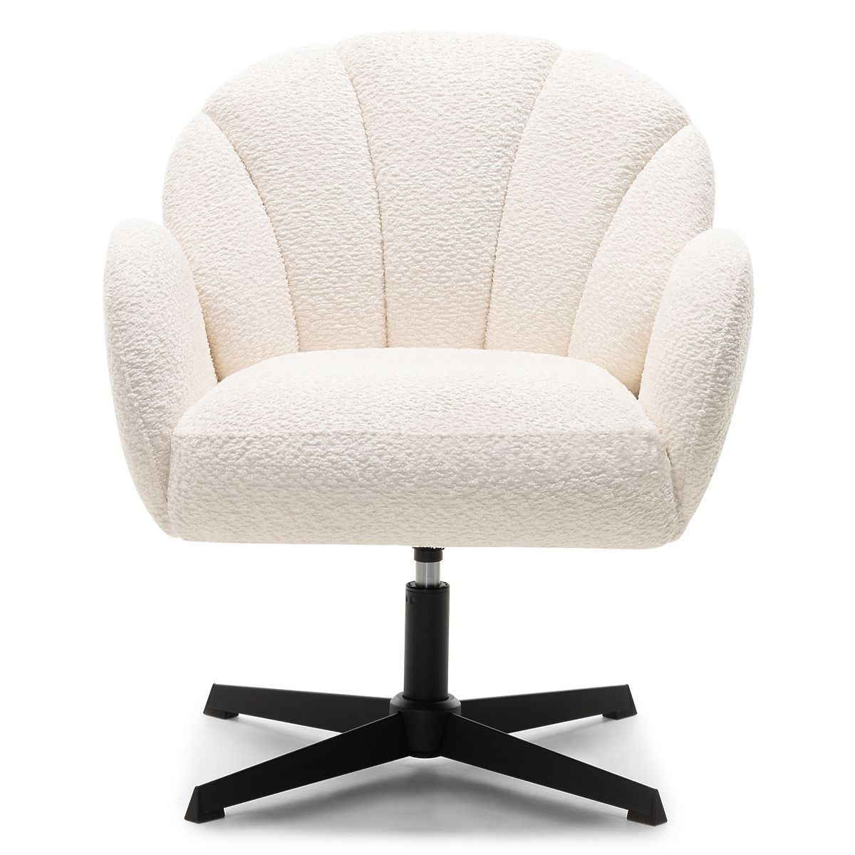 Sedia girevole Casablanca con tessuto bouclé bianco e gambe nere. .. altro