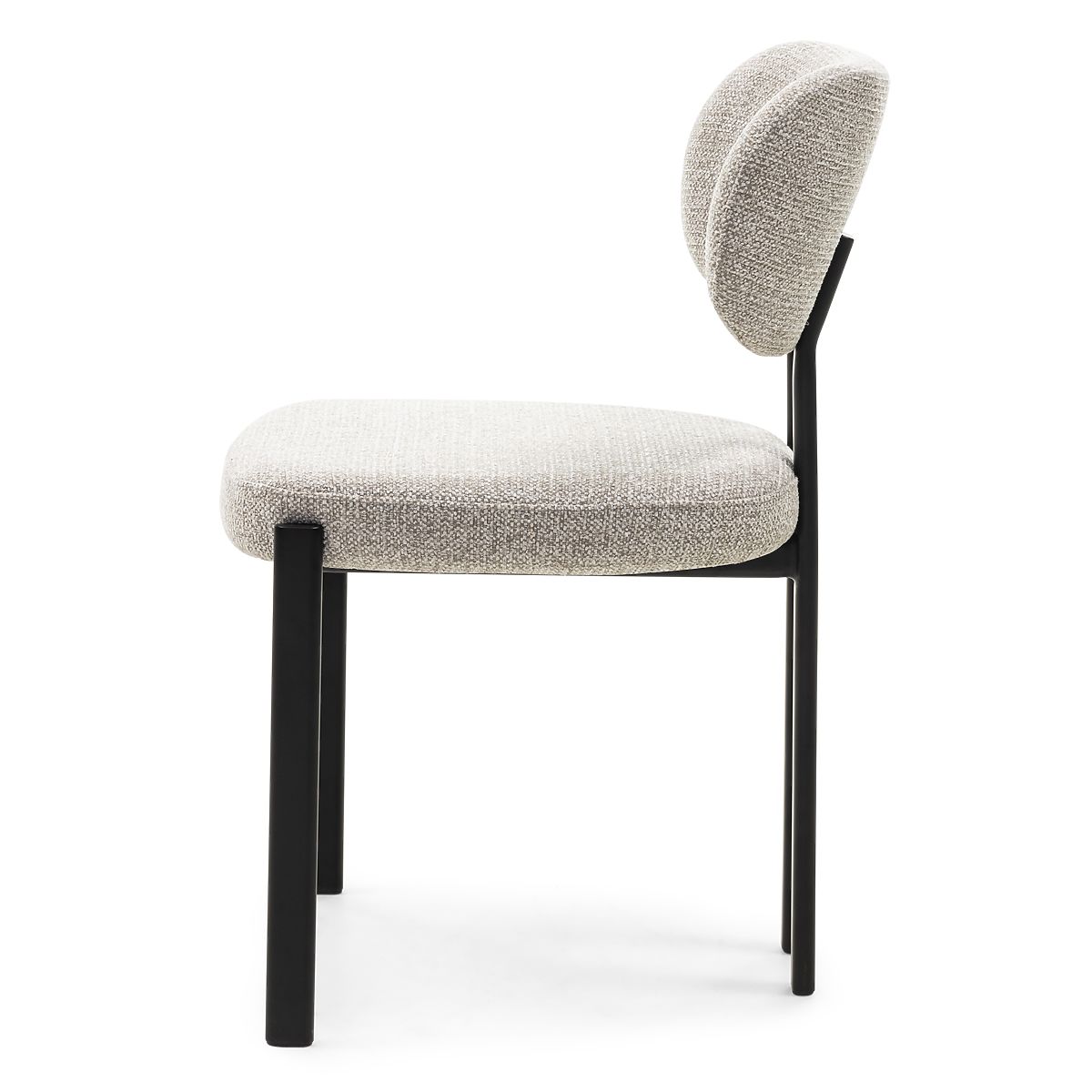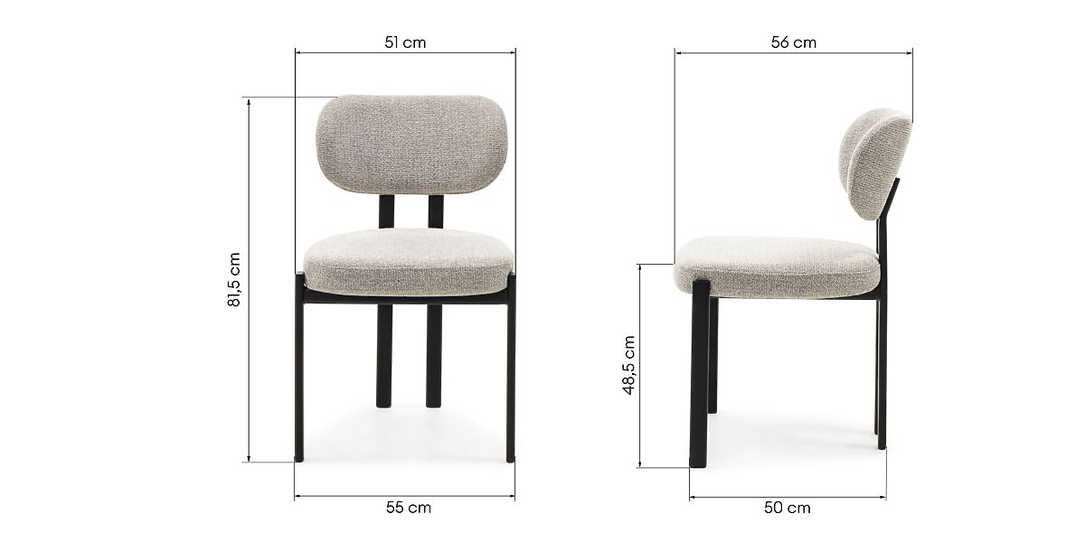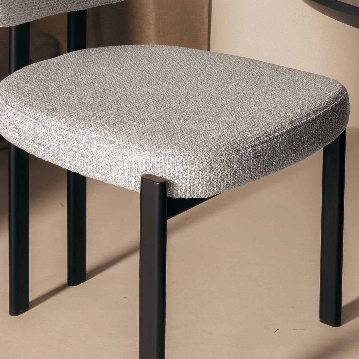 Sedia imbottita Flare con tessuto beige e gambe nere. .. altro