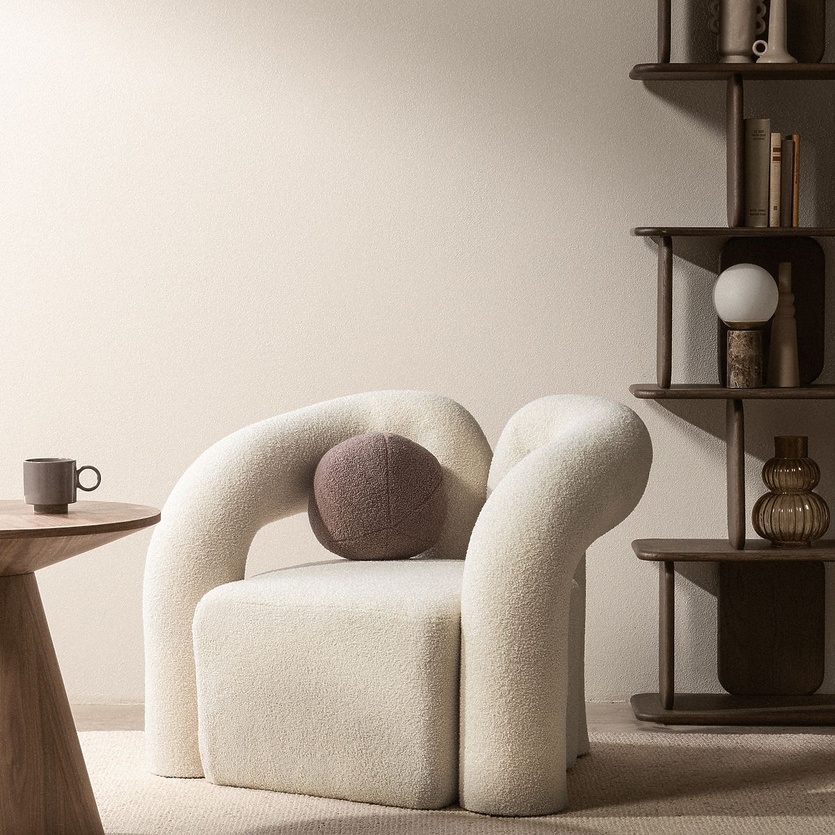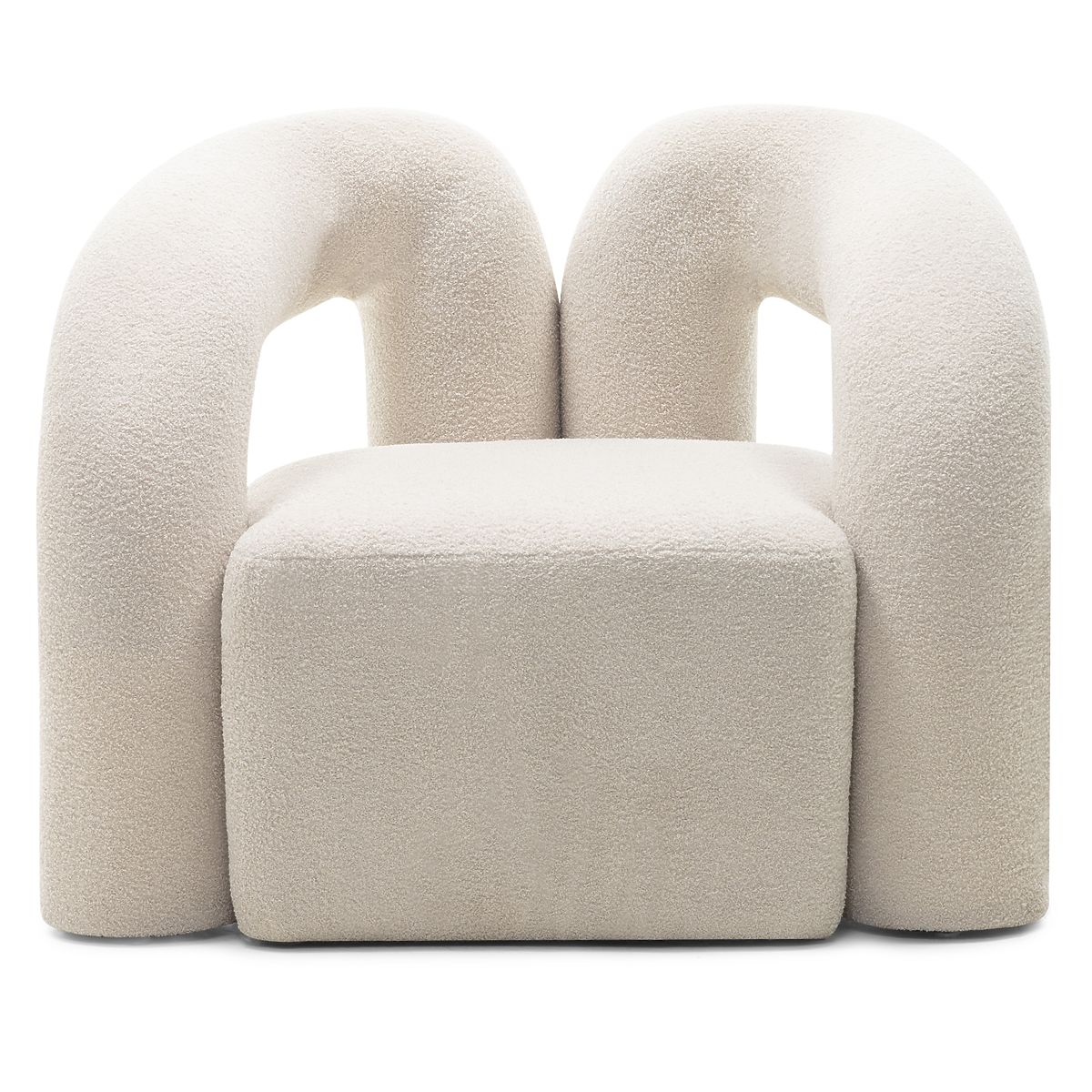 Poltrona Merry beige chiaro con tessuto boucle e forma arrotondata. .. altro
