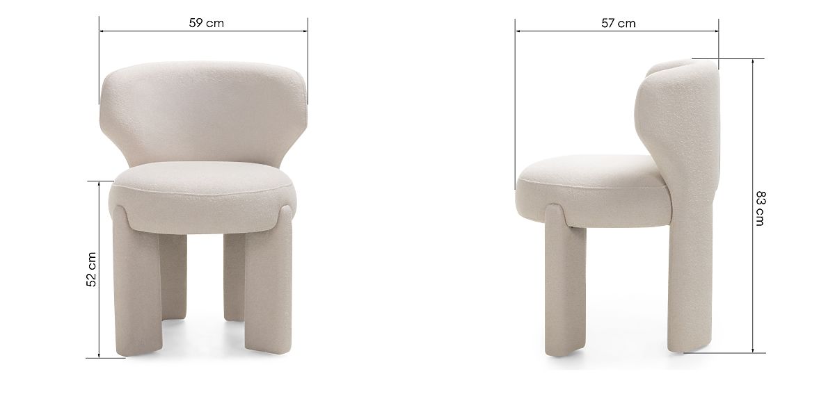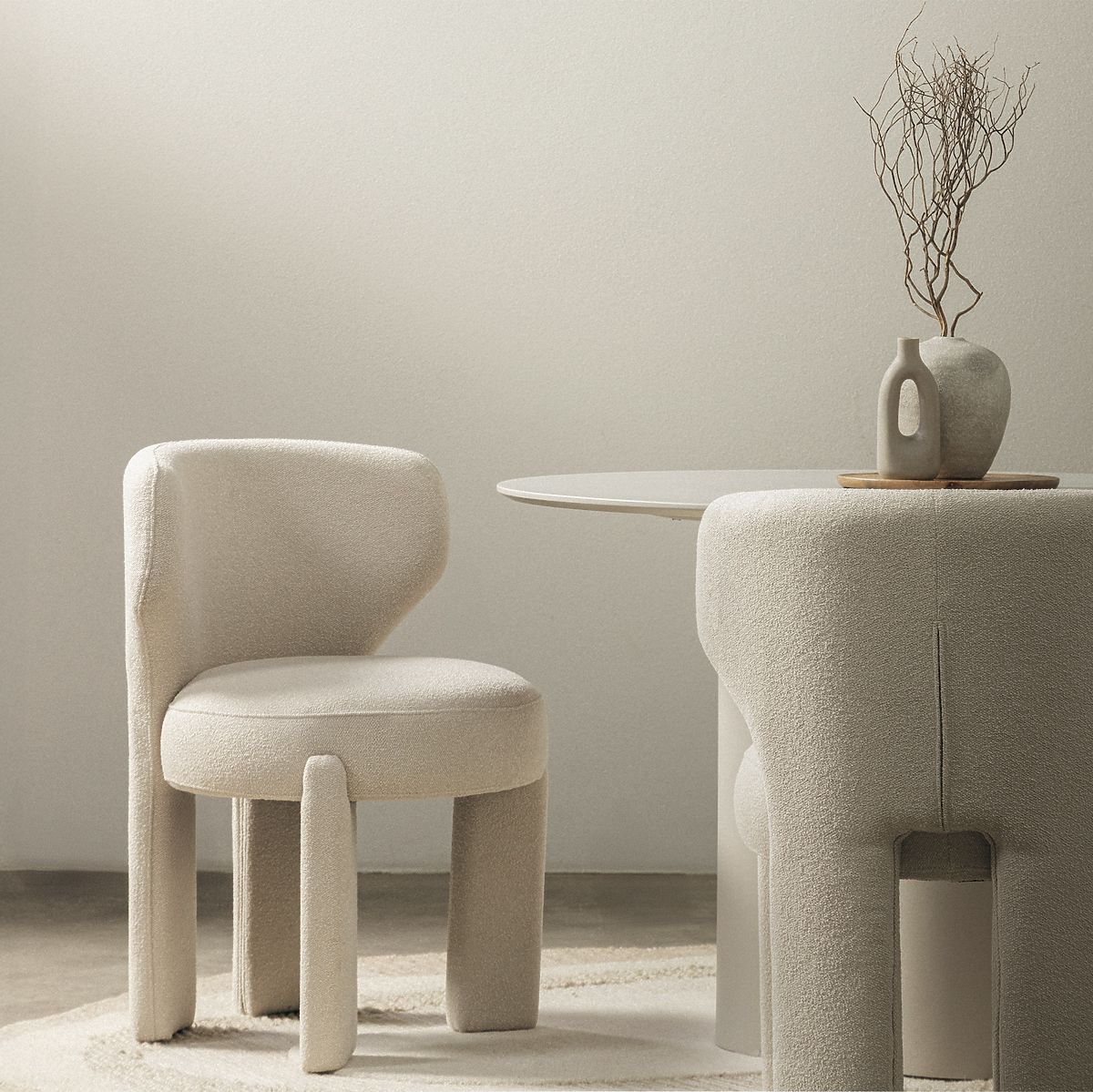 Sedia Elaine in tessuto boucle crema con forme arrotondate. .. altro
