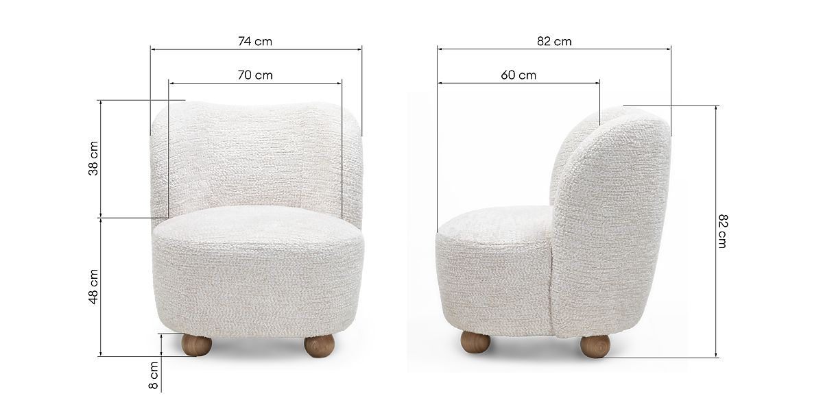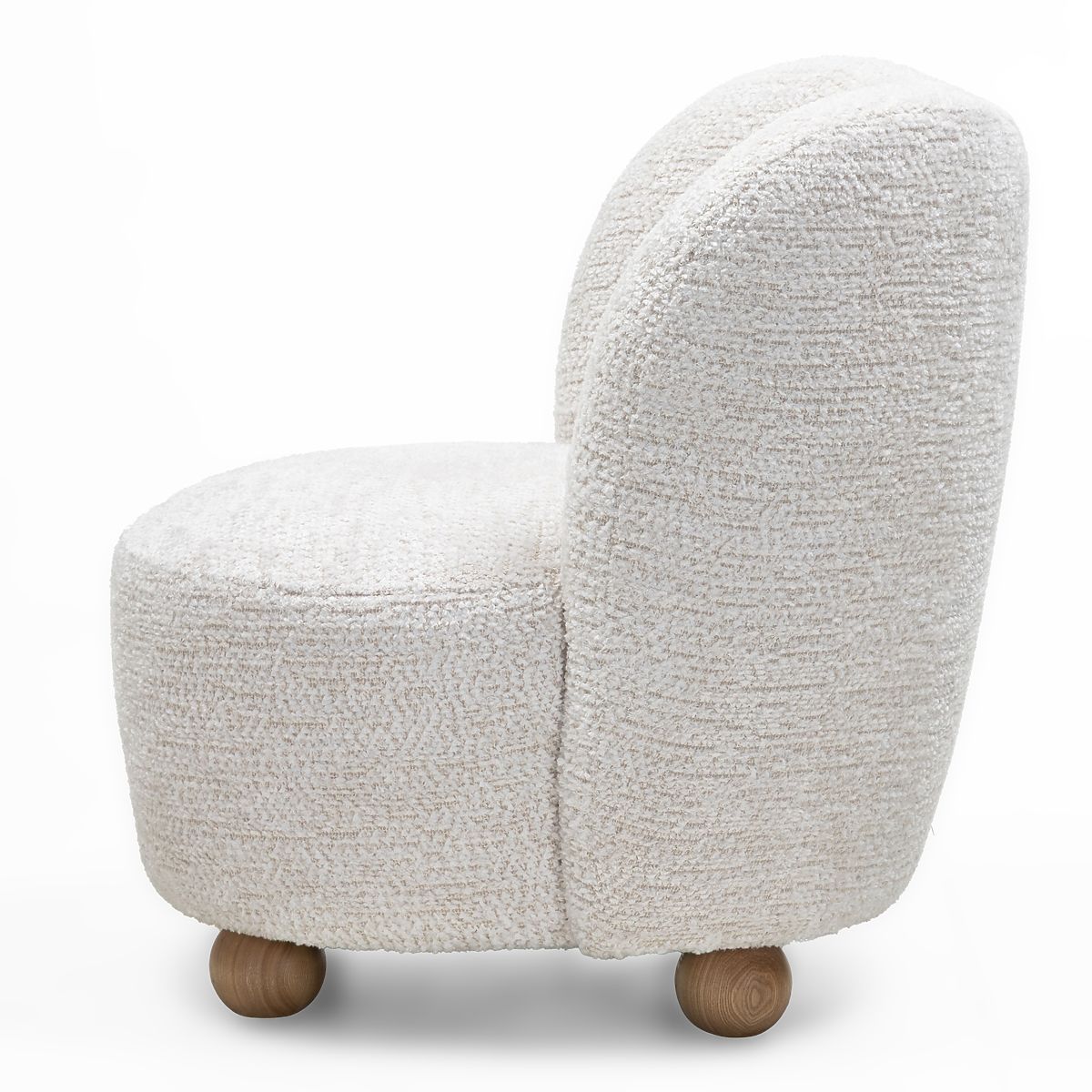 Poltrona Monroe con forme arrotondate e gambe a sfera in legno di frassino. .. altro