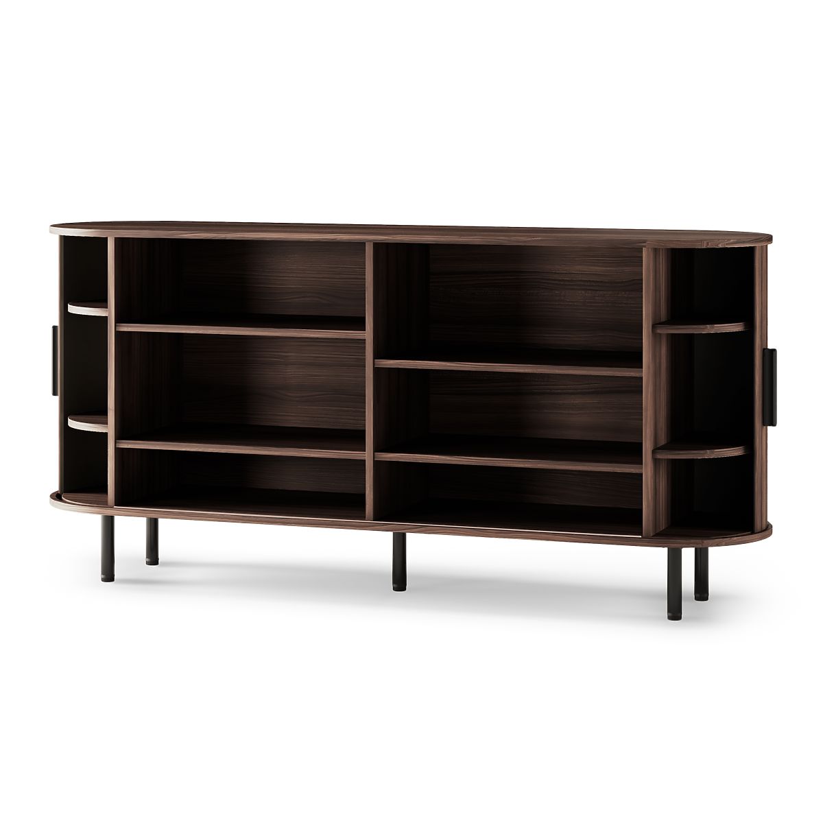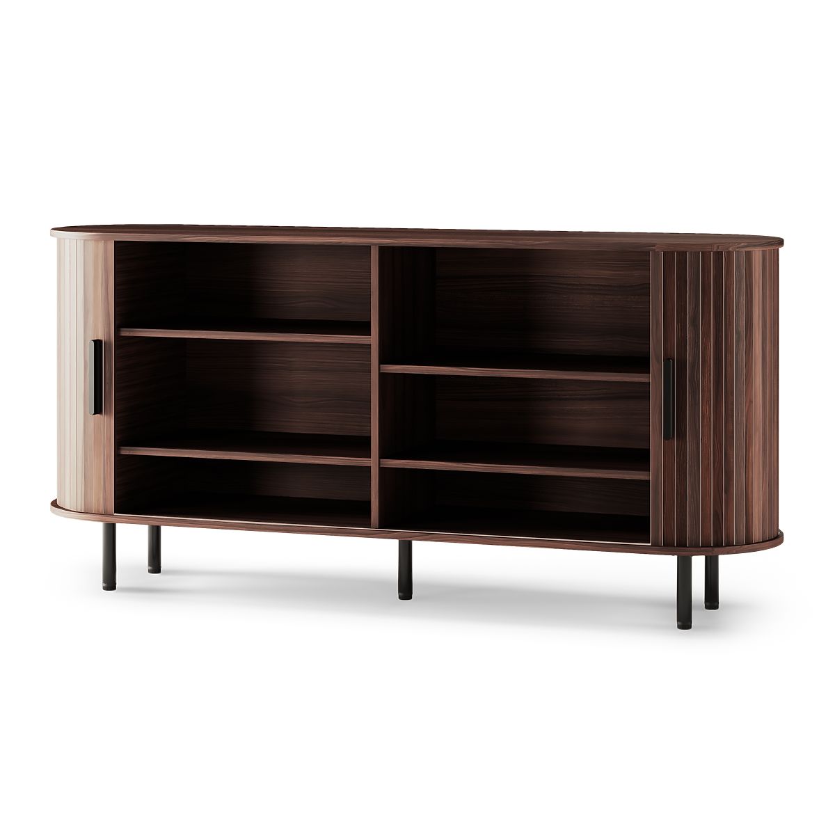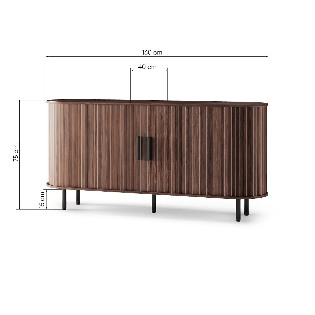 Cassettiera di design con lamelle e finitura noce scuro. .. altro