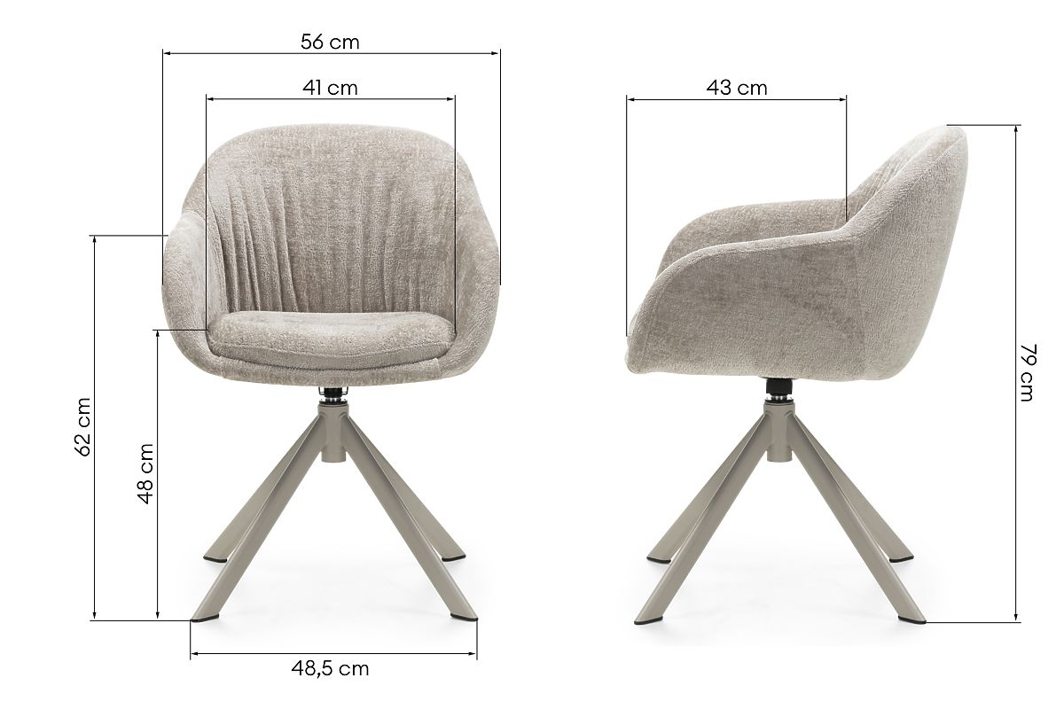 Immergiti nel comfort che ti avvolge dal primo contatto. La sedia girevole KAIRO non è solo un mobile elegante, ma soprattutto un invito al relax quotidiano. Il tessuto morbido e piacevole al tatto in una calda tonalità beige conferisce all'interno accoglienza ed eleganza, mentre le delicate pieghe sullo schienale sottolineano delicatamente il suo carattere moderno. Il sedile girevole a 360° garantisce libertà di movimento. Ideale sia per l'ufficio domestico che per lo spazio relax. I comodi braccioli offrono una sensazione di stabilità e relax ogni volta che ne hai bisogno. La struttura stabile basata su gambe in metallo in una tonalità beige-grigio completa armoniosamente l'insieme, creando un pezzo d'arredo eccezionale con un design senza tempo. KAIRO è una combinazione di estetica e funzionalità che dona classe al tuo interno e a te - un momento solo per te.