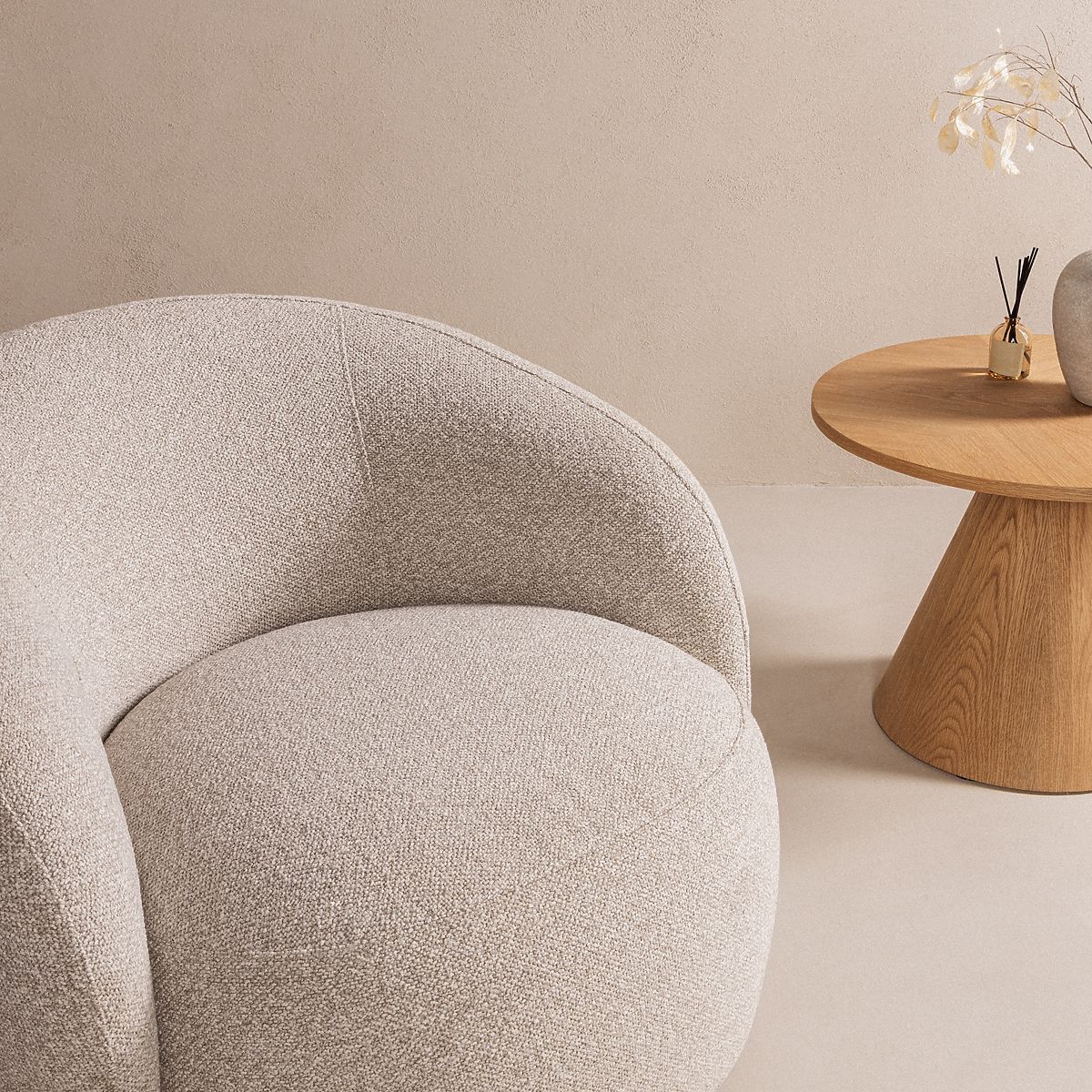 Sedia girevole Nambi con forme arrotondate e colore beige-grigio. .. altro