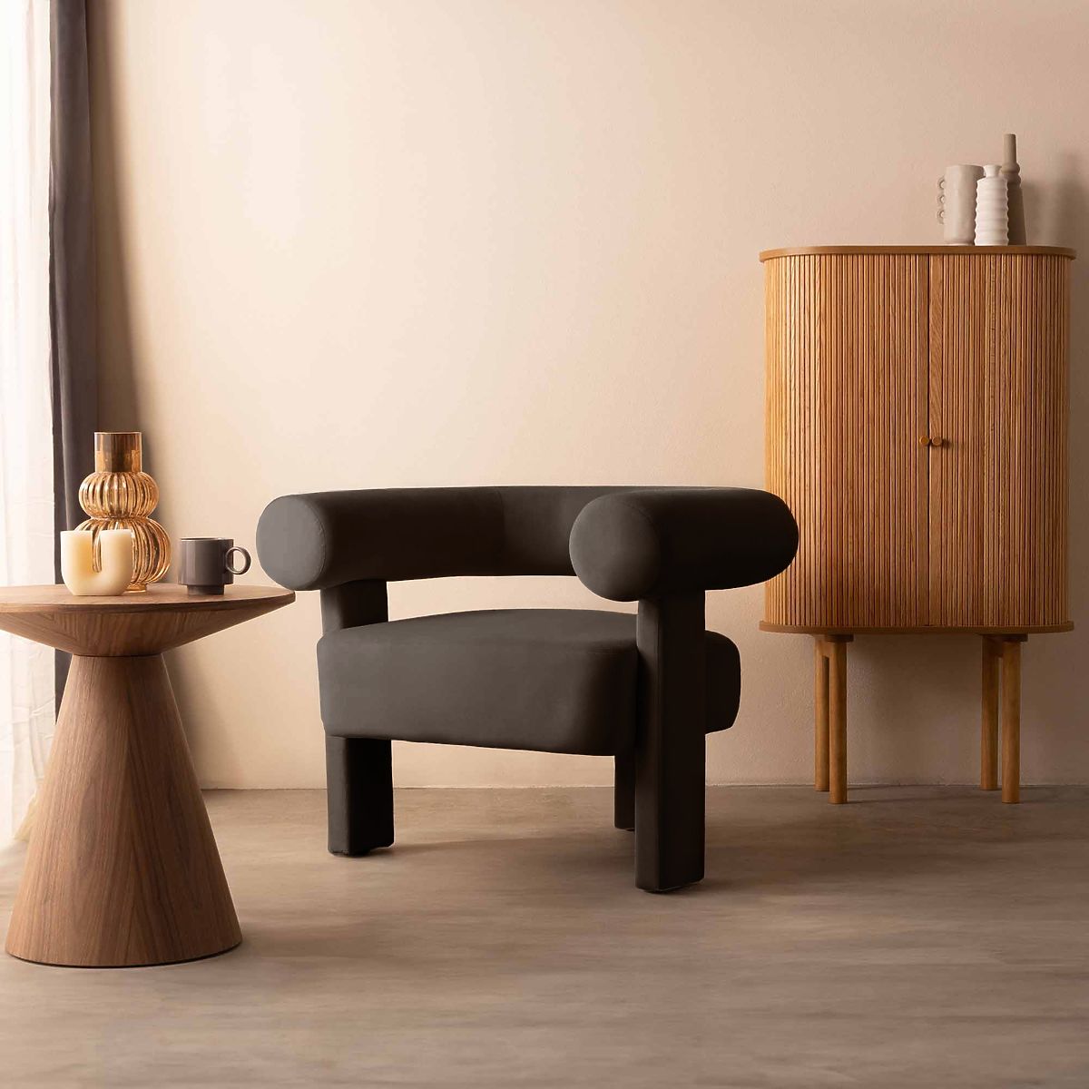 Poltrona relax Hella con forma arrotondata e tessuto vellutato. .. altro