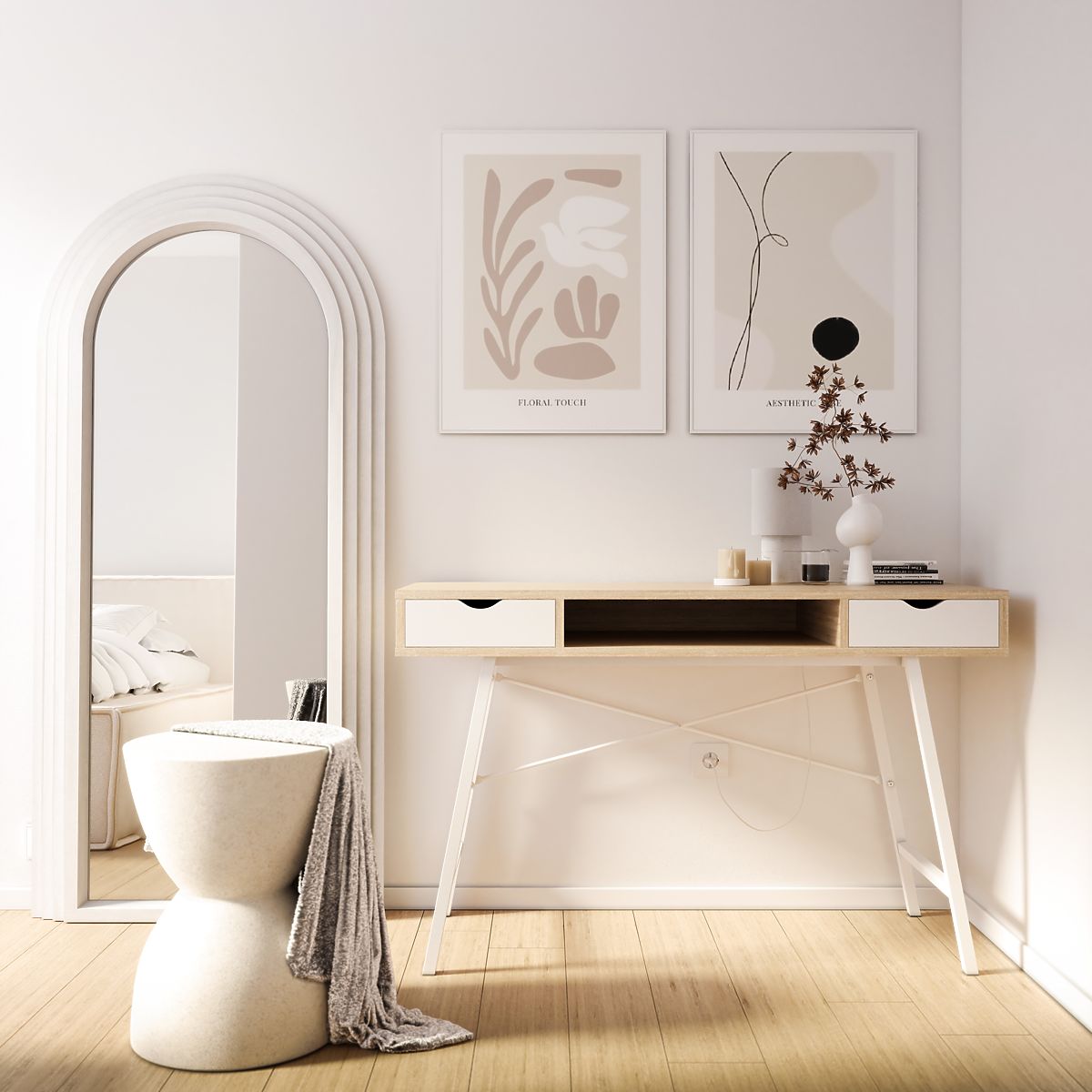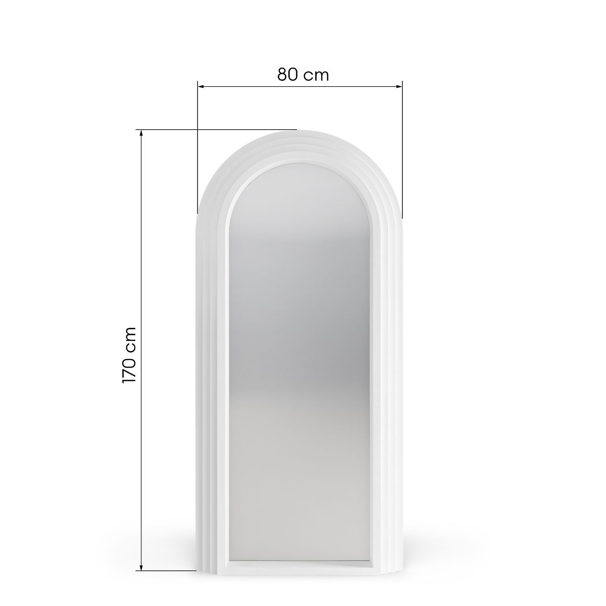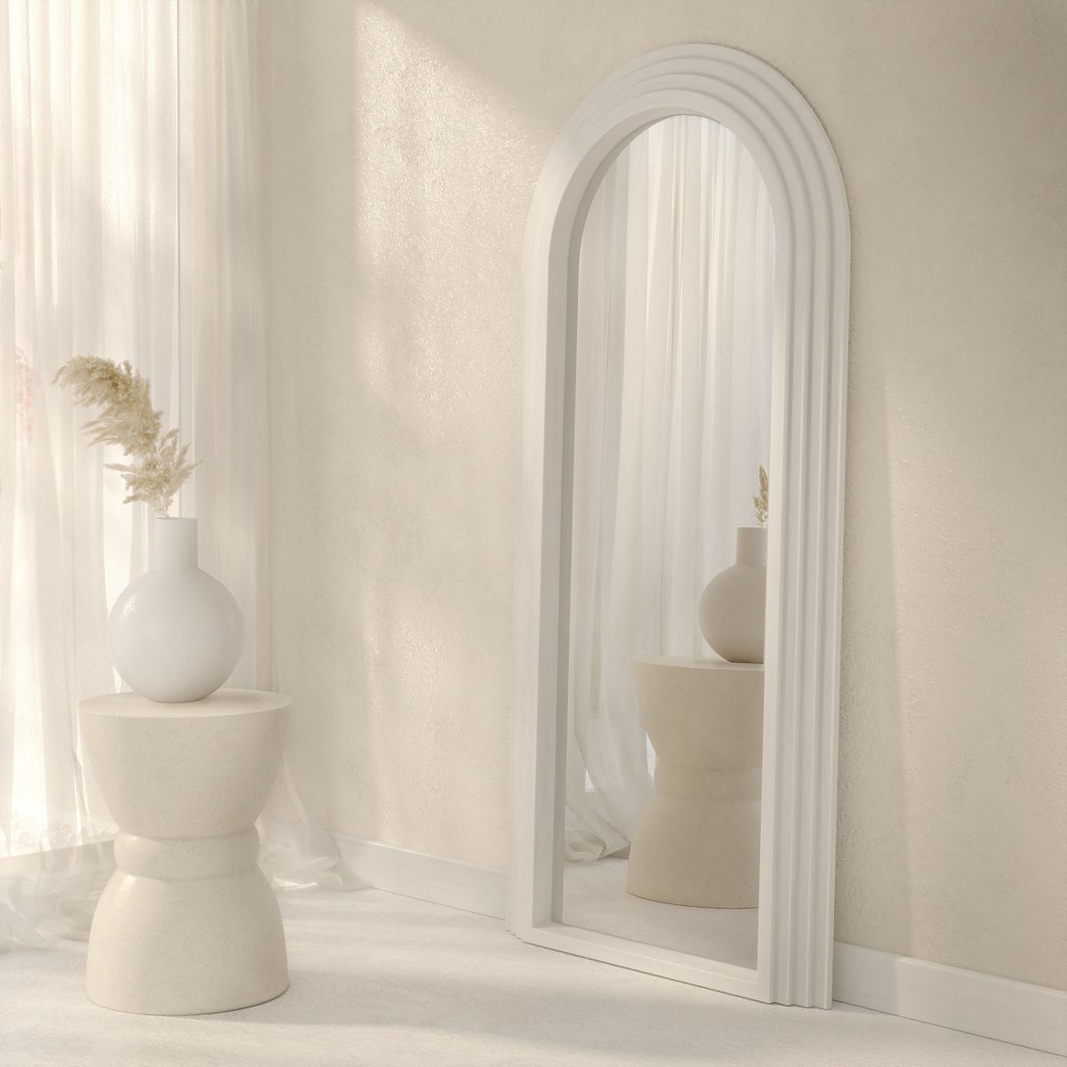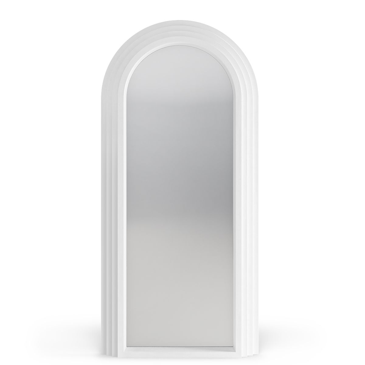 Specchio decorativo con cornice in legno bianco a forma di arco. .. altro